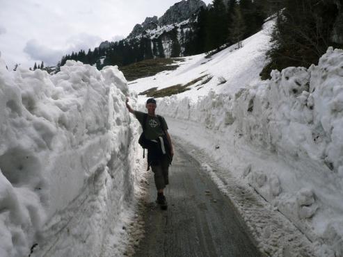 Nach einem steilem Anstieg gelangten wir zur bewirtschafteten Gorialm (1170m). Von hier mussten wir uns dann teilweise durch den Schnee zur Steinlingalm (1473 Höhenmeter) durch kämpfen. Kurzzeitig sah es nach Regen aus, aber wir hatten Glück und blieben davon verschont. In der Alm gab es Wurstsalat und eine Schorle. Zum Gipfel stiegen wir nicht auf, da einfach zu viel Schnee lag. Der Abstieg zum Parkplatz dauerte ca. 1 1/2 Stunden.