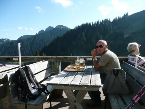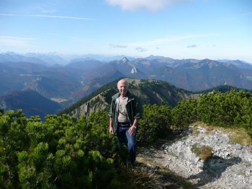 Mit meinem Papa fuhr ich zuerst Richtung München und dann weiter am Tegernsee vorbei zur Wallbergmautstraße. Am Wanderparkplatz Wallbergmoos startete unsere Wanderung. Zuerst ging es durch den Wald eine Forststraße steil nach oben. Nach fast einer Stunde erreichten wir das Wallberghaus auf 1507 m. Von hier hatten wir schon einen wunderbaren Ausblick Richtung Risserkogel, Wallberg und in der Ferne konnte man schon Zugspitze und Watzmann sehen. Nach einer kurzen Rast umrundeten wir den Setzberg auf dem Alpenlehrpfad. Eine Schulklasse war leider vor uns unterwegs und machte ziemlichen Lärm. Nach einigen Überholversuchen ließen wir diese dann hinter uns. Nach einem Stück im Wald gelangten wir auf den Sattel oberhalb des Riderecksees. Wir gingen auf dem Grat entlang weiter nach links durch die Felsen und dann durch Latschen bis zum Gipfel. Auf den letzten Metern geht es steil nach oben und es ist etwas Trittsicherheit nötig. Sogar 2 x mit Seilen versichert. Insgesamt nach ca. 3 Stunden standen wir auf dem Gipfel des Risserkogels (1867m). Wir hatten eine herrliche Aussicht ins Karwendel und Wettersteingebirge. Wir machten ausgiebig Brotzeit und genossen die Höhensonne, bevor wir wieder auf dem gleichem Weg abstiegen. Im Wallberghaus genehmigten wir uns noch ein Getränk und dann ging es auch schon wieder zurück zum Parkplatz.