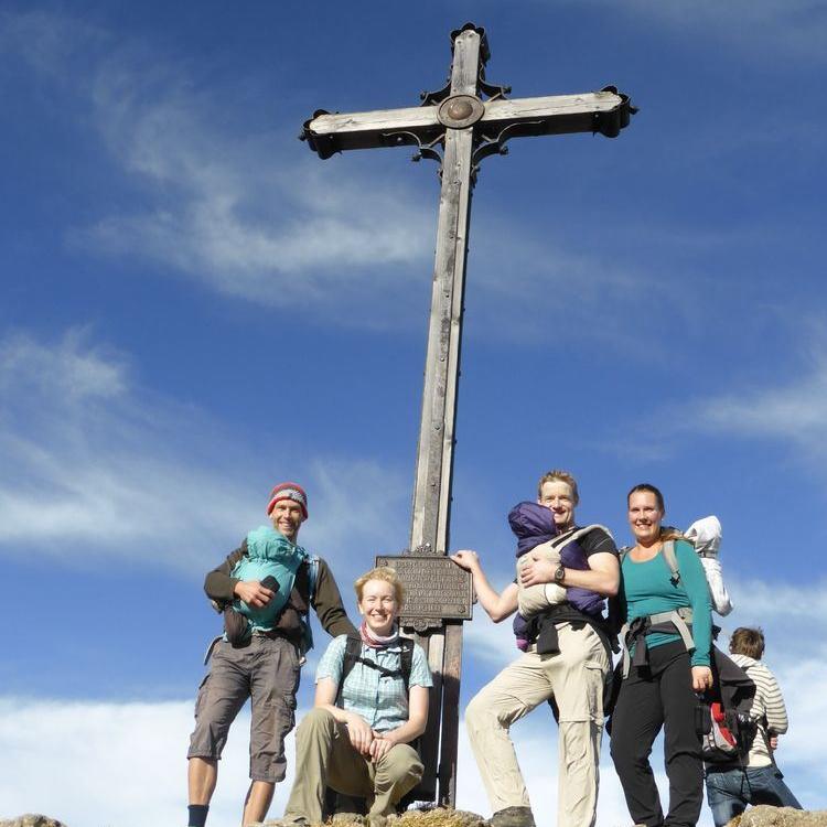 Obwohl die Nacht dank dem guten Tegernseer Bier etwas zu kurz geraten war, der Kopf noch ein bisserl brummte, war trotzdem unser Tatendrang riesen groß. Wir starteten unsere Tour ab der Selbstversorgerhütte, die ca. 1,5 km und 100 Hm über dem Spitzingsee liegt. Unsere Emma durfte ich in der Manduka tragen und die kleine Johanna hing an Christoph :-) Es ging zuerst durch den Wald und über Forstwege nach oben. Es war herrlich warm und über uns gab es nur blauen Himmel und Sonne. Relativ schnell gelangten wir auch schon auf Almwiesen und die Aussicht wurde immer schöner. Nach knapp 1 1/2 Stunden sahen wir auch schon das Rotwandhaus. Da unsere kleinen Mäuse den Schlaf des Gerechten hatten, entschieden wir uns den Gipfel gleich zu besteigen. Dort hatten wir eine traumhafte Aussicht. Unter uns sahen wir ein Wolkenmeer und ab ca. 1000 Höhenmeter gab es nur Sonne. Auf der Hütte bekamen die kleinen Mädels ihr Fläschchen und wir eine deftige Brotzeit. Nach gemütlicher Einkehr stiegen wir über den Pfanngraben ab. Die Tour führte uns an zahlreichen, wildromantischen Wassergumpen vorbei. Langsam wurde es dunkel und bei den Mäusen kam auch wieder der Hunger. An der Straße nach Valepp trennten wir uns. Ich zog meine Laufklamotten an und lief zurück zur 5 km entfernten Hütte und holte das Auto, während Brigitte, Christoph, Kathrin und die beiden Mäuse nach Valepp wanderten, wo Freunde von den Tichys ebenfalls eine Selbstverorgerhütte bewohnten. Dort bekamen wir noch ein Bier, bevor wir wieder zurück in unsere Hütte fuhren und noch einen gemütlichen Hüttenabend verbrachten.