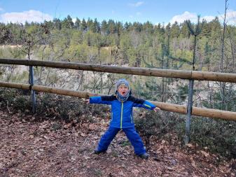 Die Kinder hatten großen Spaß und wanderten fleißig auf der Großen Pfahlrunde. Kraxelnd, springend und laufend kamen wir vorwärts. In der Sonne war es angenehm warm, aber im Wald an der Ostseite des Pfahls wehte ein eisiger Wind. Zusammen lasen wir die interessanten Informationstafeln. Wir hatten bei der Runde viel Spaß und die anschließende Einkehr in der Viechtacher Pizzeria Mille Gradi war sicherlich verdient.