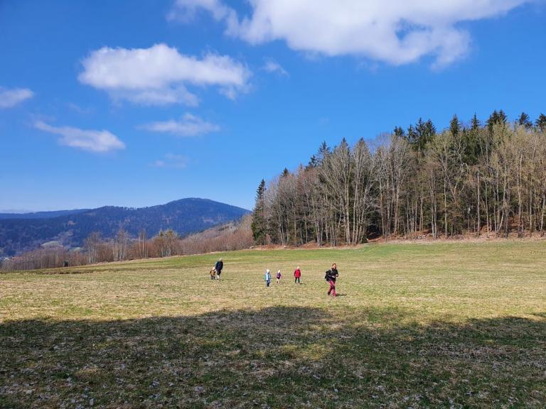 Schöne Familienwanderung auf einen einsamen Gipfel. Für Kinder bestens geeignet. Es finden sich Ameisenhügel, Stockpilze und viele Steine zum erforschen auf der Strecke. Der Weg wird nie langweilig. Immer wieder hat man eine herrliche Aussicht auf den Vogelsang, Rauhen Kulm und Geißkopf. Als Highlight gibt es direkt unter dem Gipfelkreuz einen Geocache. Mein kleiner Timi marschierte bis zum Gipfel fast alles selbst, nur die letzten beiden Kilometer musste ich den kleinen Zwerg tragen. zum Schluss schlief er dann sogar in meinem Arm ein :-)