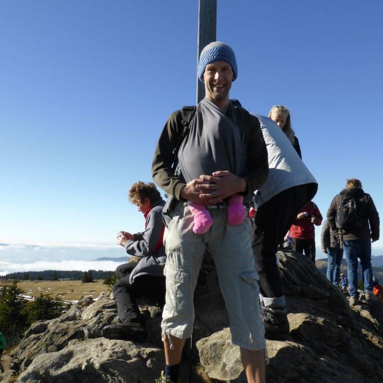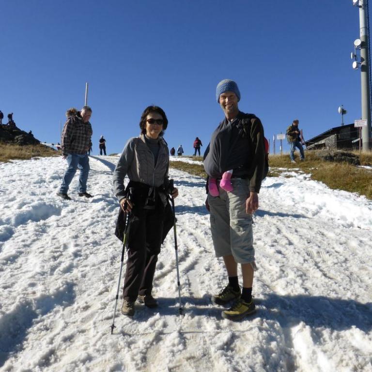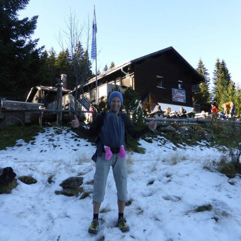 Da Emma durch unsere dreiwöchige Südtirol und Chiemgaureise schon bergsüchtig geworden ist, musste natürlich auch ein heimischer Berg her. Natürlich nicht irgendeiner, sondern der Höchste, also der Große Arber mit seinen 1456 m. Zum ersten Mal durfte die kleine Maus mit ihrer Oma und ihrem Opa wandern. Ich holte meine Eltern ab und wir fuhren Vormittag nach Brennes, wo wir als erstes in eine Hütte gingen, damit Emma ihr 3. Frühstück zu sich nehmen konnte :-) Dann ging es ab ins Tragetuch und die Wanderung konnte beginnen, die Emma wieder komplett verschlief. Wir hatten ein herrliches Herbstwetter mit traumhafter Aussicht in die Berge. Auf dem Gipfel waren viele, viele Wanderer, da auch noch Herbstferien waren. Wir hatten noch eine Stunde bis zur nächsten Raubtierfütterung, deshalb entschieden wir bis zur Chamer Hütte zu wandern. Dort aßen wir lecker zu Mittag und auch Emma bekam natürlich ihr Fläschchen. Sie war wie immer begeistert vom Hüttenleben :-) Am Nachmittag wanderten wir wieder um den großen Arber und stiegen ab bis nach Brennes.