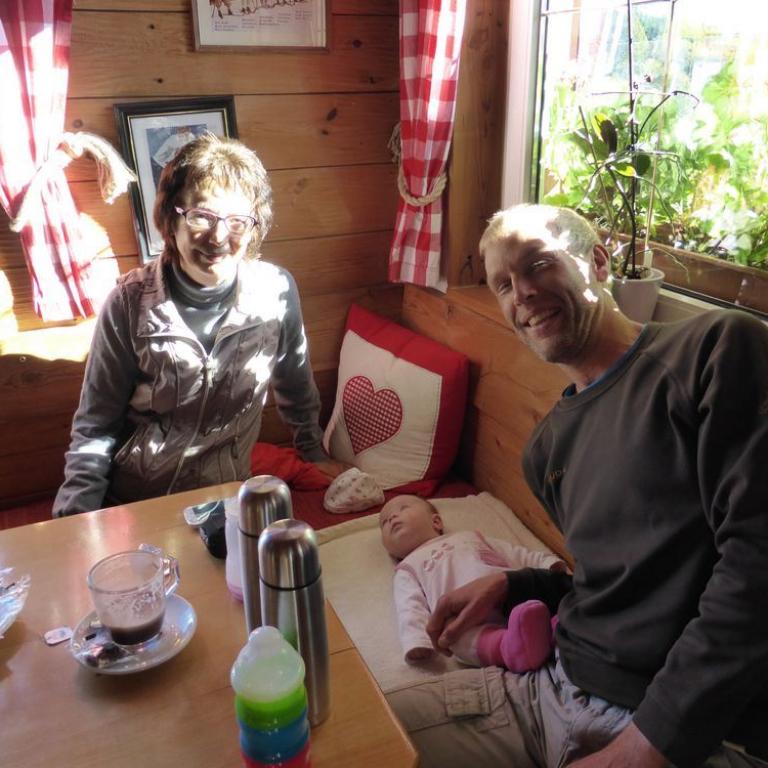 Da Emma durch unsere dreiwöchige Südtirol und Chiemgaureise schon bergsüchtig geworden ist, musste natürlich auch ein heimischer Berg her. Natürlich nicht irgendeiner, sondern der Höchste, also der Große Arber mit seinen 1456 m. Zum ersten Mal durfte die kleine Maus mit ihrer Oma und ihrem Opa wandern. Ich holte meine Eltern ab und wir fuhren Vormittag nach Brennes, wo wir als erstes in eine Hütte gingen, damit Emma ihr 3. Frühstück zu sich nehmen konnte :-) Dann ging es ab ins Tragetuch und die Wanderung konnte beginnen, die Emma wieder komplett verschlief. Wir hatten ein herrliches Herbstwetter mit traumhafter Aussicht in die Berge. Auf dem Gipfel waren viele, viele Wanderer, da auch noch Herbstferien waren. Wir hatten noch eine Stunde bis zur nächsten Raubtierfütterung, deshalb entschieden wir bis zur Chamer Hütte zu wandern. Dort aßen wir lecker zu Mittag und auch Emma bekam natürlich ihr Fläschchen. Sie war wie immer begeistert vom Hüttenleben :-) Am Nachmittag wanderten wir wieder um den großen Arber und stiegen ab bis nach Brennes.