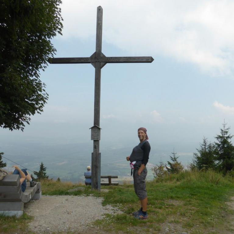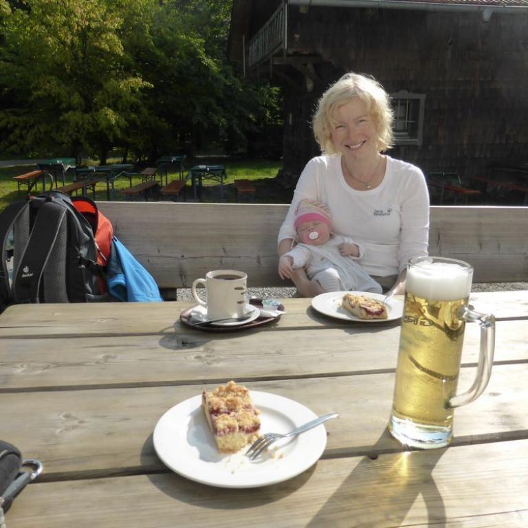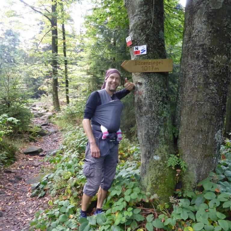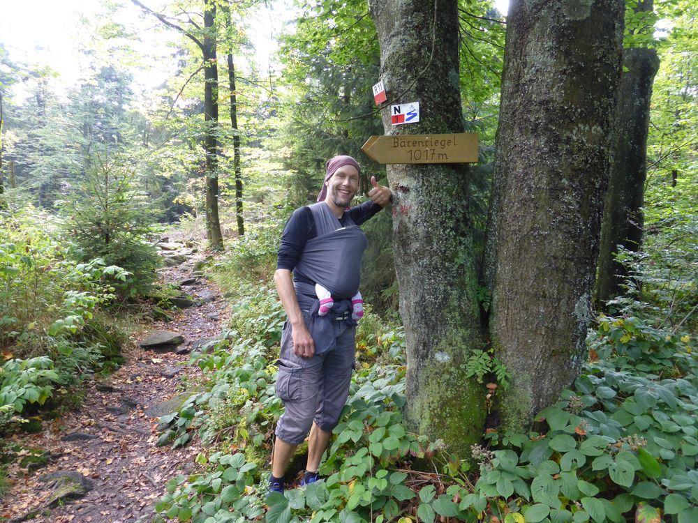 Emma wollte an die frische Luft und das ist mit ihren Eltern natürlich kein Problem. Wetter sollte passen, also sind wir drei schon früh nach Neukirchen beim Hl. Blut zur Talstation der Hohenbogenbergbahn. Natürlich kam für uns die Bahn nicht in Frage und somit kam Emma in das Tragetuch und ab ging es wandertechnisch in Richtung Diensthütte Hohenbogen. Über eine Forststraße erklommen wir die Höhenmeter. Die frische Luft und der Wald tat richtig gut. Brigitte war froh nach der Schwangerschaft langsam zu alten Kräften zu kommen und dadurch auch wieder besser die Natur genießen zu können. Nach 1 1/2 Stunden erreichten wir die Diensthütte Hohenbogen, wo wir unsere Kleine und auch uns fütterten. Von hier führte uns ein Pfad zu den ehemaligen Nato Türmen auf 1079 m und dann weiter zur Bergstation. Von hier stiegen wir über das Haus Schönblick und über die Skipiste wieder ab zur Talstation und zum Parkplatz. Insgesamt waren wir 4 Stunden incl. 1 Stunde Einkehr unterwegs.