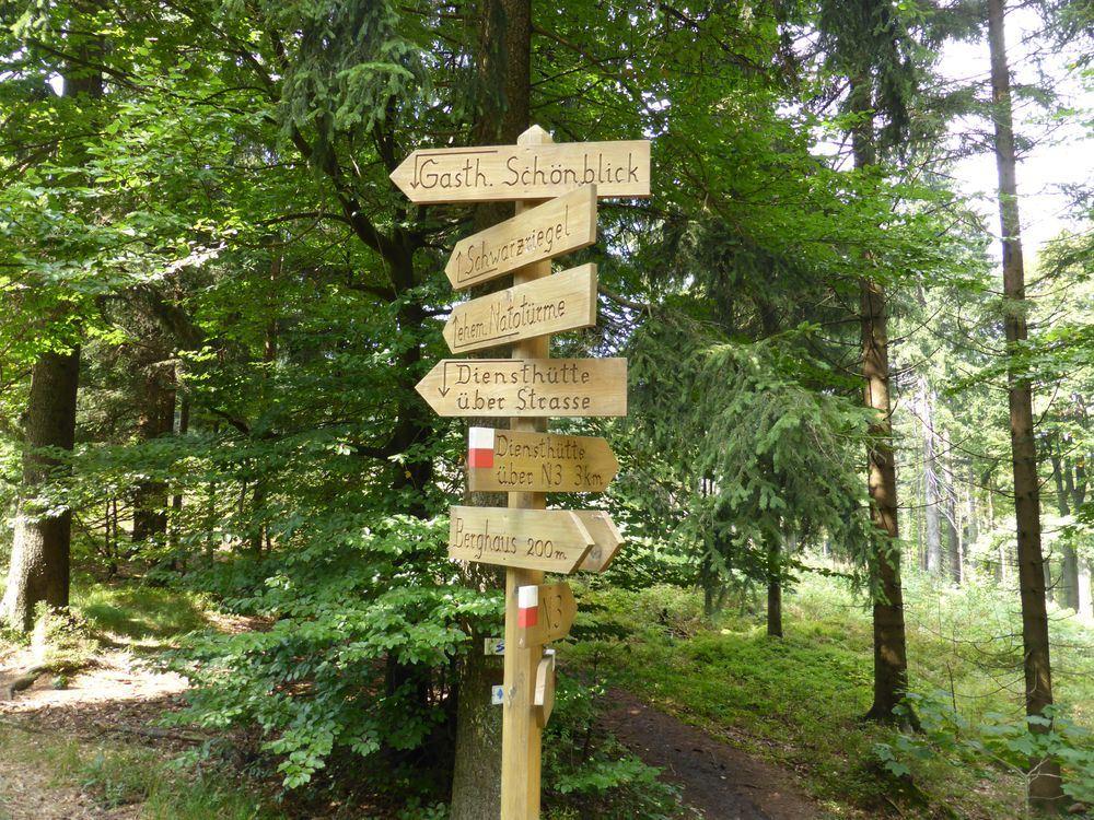 Aufstieg: Von der Tourist-Info geht es die Hohenbogenstraße entlang. Nach der Ferienpension "Hohenbogen" geht es halb-rechts zum Waldrand und auf dem Wanderweg "Neukirchner Weg" geht es weiter zur Forstdiensthütte.