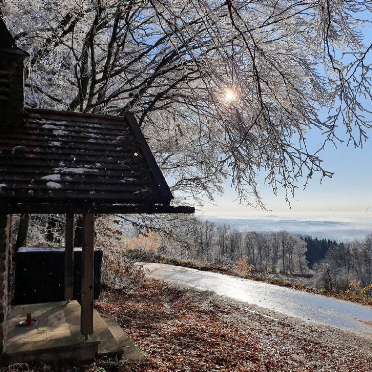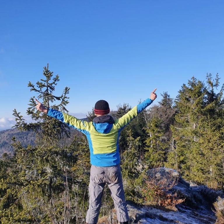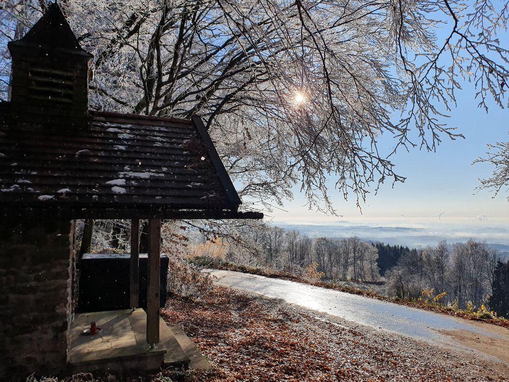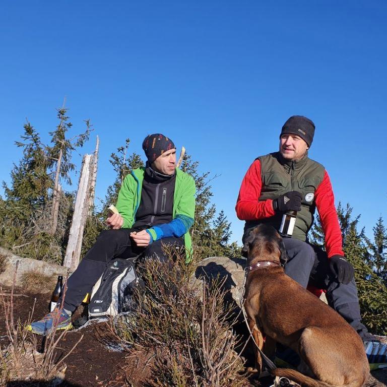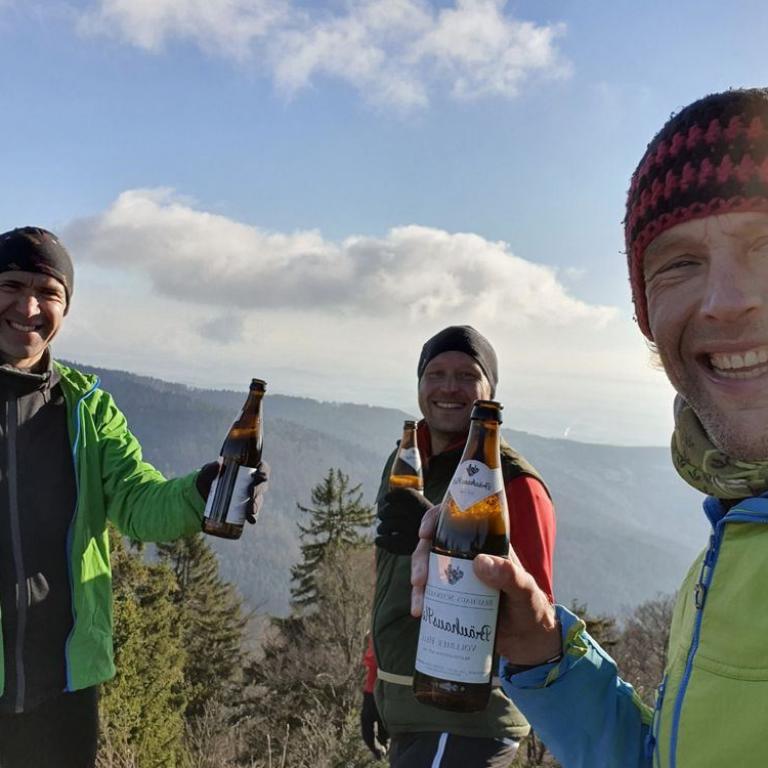 Einmal im Jahr gibt es eine "Alte Freunde" Tour, die ich organisiere. Dieses Mal waren wir leider nur zu dritt, da die restlichen "Freunde" abgesagt haben. Trotzdem wurde es eine super, schöne Tour in der Heimat mit einem Gipfelbier :-) Von Ed wanderten wir nach Höhenberg und von dort über den "Kraxelsteig" auf das Jägerkreuz. Weiter an der Bärenhöhle vorbei und dann in Richtung Eck. Vorher bogen wir links nach oben ab, zum Rauhen Kulm. Dieser war aber nicht unser Ziel, sondern der unbekannte Klausenstein mit seinen 1048 m. Ein kleiner Pfad führte uns ca. 500 m vor dem Rauhen Kulm nach rechts zum Gipfel. Es gibt hier keinen Wegweiser. In der Sonne bei herrlicher Aussicht genossen wir eine Gipfelhalbe (natürlich das lokale Schwarzacher Bräuhaus Helle) :-) Nach ausgiebiger Rast wanderten wir über den Mühlgrabenweg bis zum Schuhfleck und von dort zurück über Höhenberg bis zum Parkplatz.