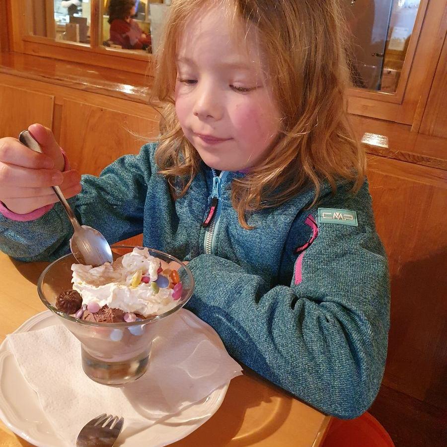 Nach dem Frühstück verabschiedeten wir uns von der Chamer Hütte. Emma und ich waren die ersten, die aufbrachen. In der Nacht bekamen wir ca. 20 cm Neuschnee. Ich lief, mit der kleinen Maus auf unserem Schlitten im Schlepptau, durch den tiefen Schnee bis zum Parkplatz in Bodenmais. Die anderen wollten noch abwarten, bis das Pistenfahrzeug die Abfahrt plattgewalzt hat, um dann abzufahren.