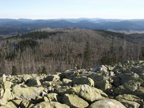 Info: Der Lusen (tschechisch Luzn ) gehört mit seiner Höhe von 1373 Metern nach dem Rachel und dem Arber zu den höheren Bergen im Böhmerwald. Er liegt wie auch der Rachel und der Große Falkenstein im Nationalpark Bayerischer Wald dicht an der Grenze zu Tschechien. In der Umgebung liegen die Ortschaften Waldhäuser, Hohenau, Mauth und Finsterau sowie Mader auf tschechischer Seite; von allen führen Wanderwege zum Gipfel. Der mit Granit-Felsblöcken vollständig bedeckte Gipfelbereich wurde einer Sage nach vom Teufel über einem Goldschatz aufgetürmt. Tatsächlich ist der Felsgipfel eine geologische Sehenswürdigkeit, die den Lusen unverwechselbar macht. Nur wenige Meter unterhalb des Gipfels befindet sich das 1938 erbaute Lusenschutzhaus. Es wird vom Bayerischen Wald-Verein betrieben, bietet Übernachtungsmöglichkeiten und wird auch im Winter am Wochenende bewirtschaftet. Hier beginnt die lange Schlittenabfahrt (Winterweg), derentwegen auch bei hohem Schnee viele Ausflügler die Mühe des Aufstiegs auf sich nehmen.