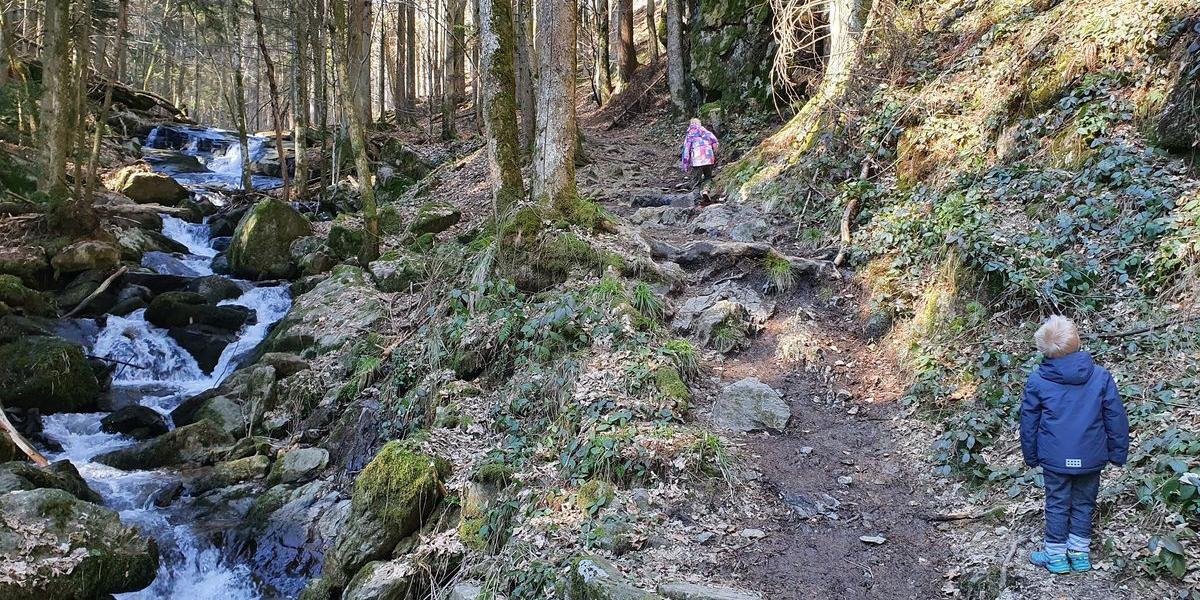 Das traumhafte Wetter wollten wir natürlich ausnutzen. Die Nagelsteiner standen schon lange auf der Wanderliste mit unseren Kindern. Wir wanderten oberhalb Obermühlbach los. Die Natur zeigt sich hier von der schönsten Seite. Wir stiegen über kleine Wasserläufe, Wurzeln und Steine. Die Nagelsteiner Wasserfälle plätscherten links des Wanderweges und wir genossen die Idylle.