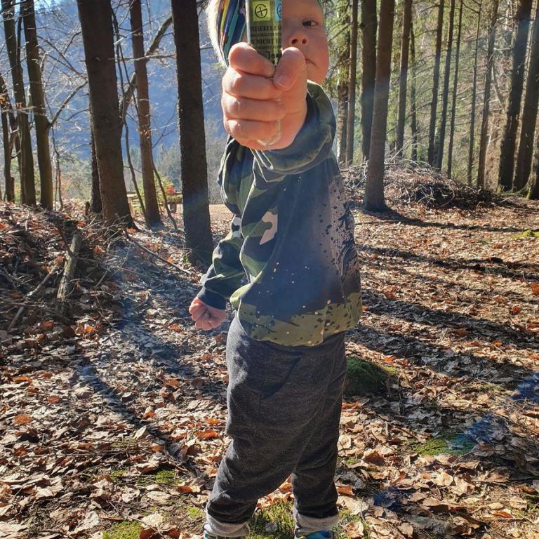Natürlich holten wir uns den Geocache direkt bei den Wasserfällen und einen weiteren bei Mitterberg. Dort machten wir in der Sonne Pause und aßen eine Kleinigkeit. Auf dem gleichen Weg wanderten wir wieder zurück. Vorbei an dem Nagelstein, einem imposanten Felsen und den vielen kleineren Wasserfällen.