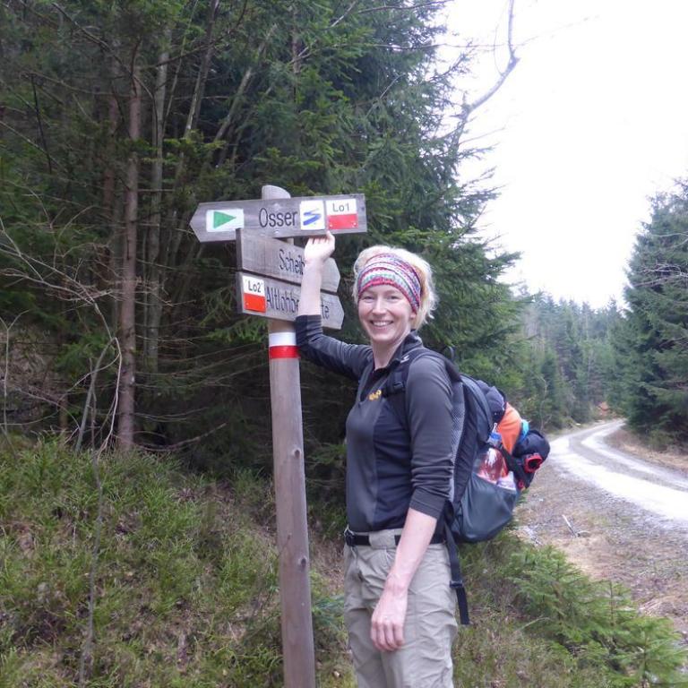 Brigitte, Emma und ich fuhren schon früh nach Lohberg. Bei bewölktem Himmel starteten wir unsere Wanderung am Wanderparkplatz in Lohberg. Die Strecke wollten wir schon genau begutachten, da diese unter anderem auch zum Ultratrail "König vom Bayerwald" ende Mai gehört. Wir wurden vom Regen verschont und teilweise blitzte sogar die Sonne heraus. Je weiter wir nach oben kamen, desto kühler wurde es und auch ein paar letzte Schneefelder mussten wir überqueren. Die letzten Meter gab es noch einen seilversicherten Steig. Nach ca. 1 1/2 Stunden standen wir auch schon auf dem Gipfel des Ossers mit seinen 1293 m. Im Osserschutzhaus kauften wir uns Erbsensuppe und heiße Schokolade. Natürlich bekam auch Emma ihr Mittagessen, bevor wir wieder zum Parkplatz abstiegen.