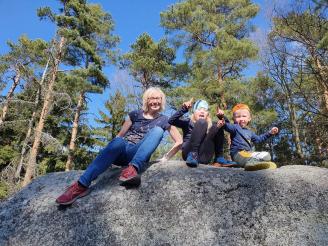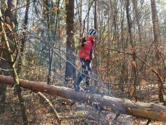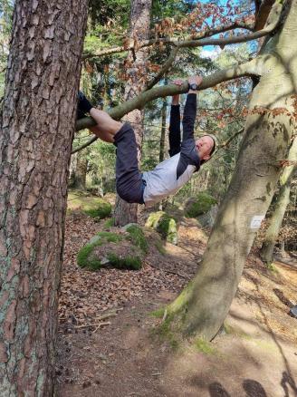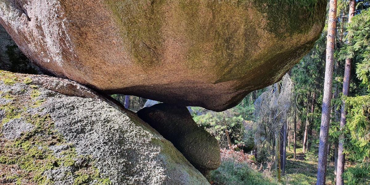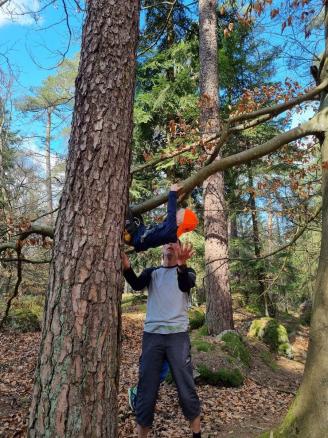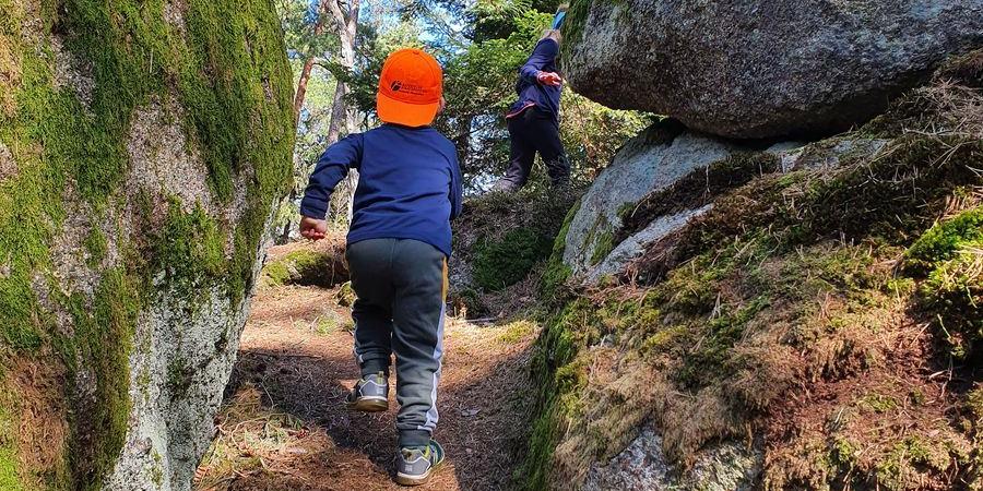 Ein kleiner Wanderweg führte uns in Richtung der Steinformation. Die Kinder hatten riesig Spaß auf umgefallenen Bäumen zu balancieren, auf Felsen zu kraxeln und über Wurzeln zu springen.
