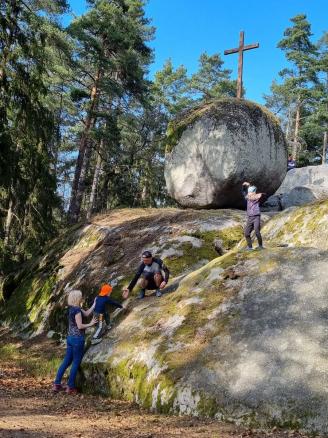 Nach ca. 45 Minuten erreichten wir den Pfaffenstein. Auch hier kraxelten wir auf den Felsen und einen Geocache fanden wir in der Nähe. Wir umrundeten den Pfaffenstein und trafen dann wieder auf den Hinweg, auf dem wir dann zurückwanderten.