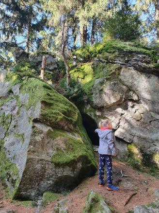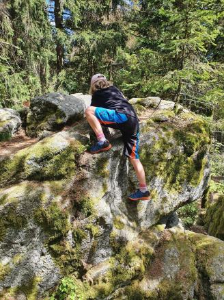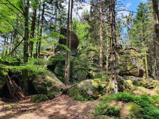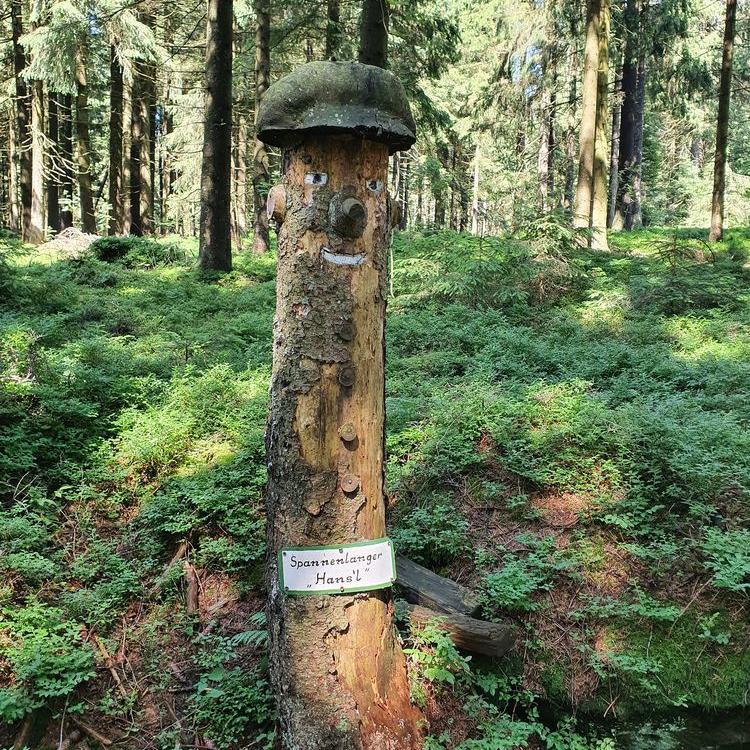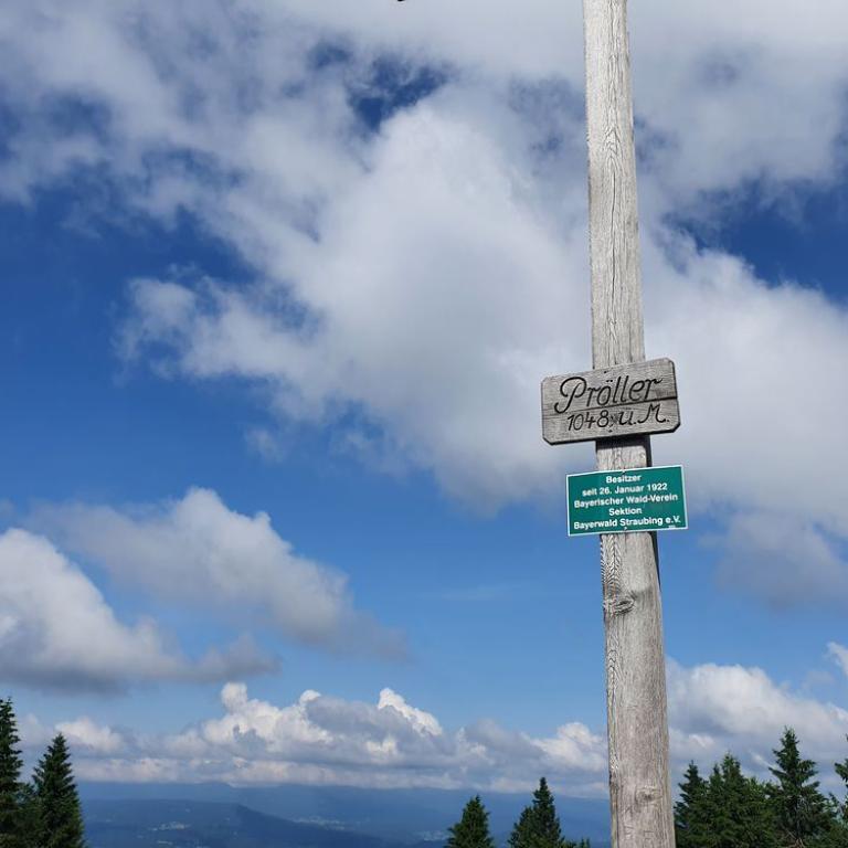 Leichte Wanderung über den Saustein zum Pröllergipfel. Ideal für Familien, die mit Kindern unterwegs sind. Der Saustein 955 m bietet eine herrliche Aussicht und eine kleines Brotzeitbankerl. Auf dem Weg zum Pröller befinden sich einige lustige Figuren, die aus Baumstöcken gefertigt wurden. Das eine oder andere Bächlein muss überquert werden und zum Schluss wird man am Pröllergipfel 1048 m mit einer traumhaften Aussicht auf Arber, Osser, Rachel und Kaitersberg belohnt. Variante mit Einkehr: Vom Pröllergipfel lohnt sich der Abstecher zum Prellerhaus und von dort zurück...