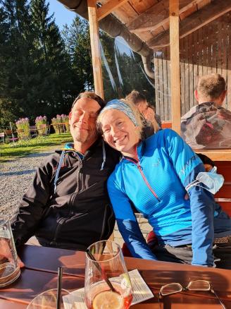 Wie jedes Jahr im Herbst trafen sich die alten Freunde im Schmelmerhof zum Frühstück. Wir tauschten alte und auch neue Geschichten aus. Gestärkt fuhren wir mit dem Auto zum Wanderparkplatz des Markbuchener Sattels. Bei kalten und nebeligen Herbstwetter wanderten wir zuerst zum Sausteingipfel und von dort an vielen lustigen Holzfiguren vorbei, bis zum Pröllergipfel. Da das Wetter wenig einladend war, stiegen wir zum Gasthof Hochpröller ab. Dort kehrten wir auf ein Bier ein, bevor es zurück zum Ausgangspunkt ging.