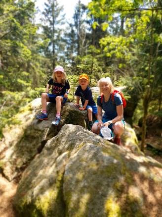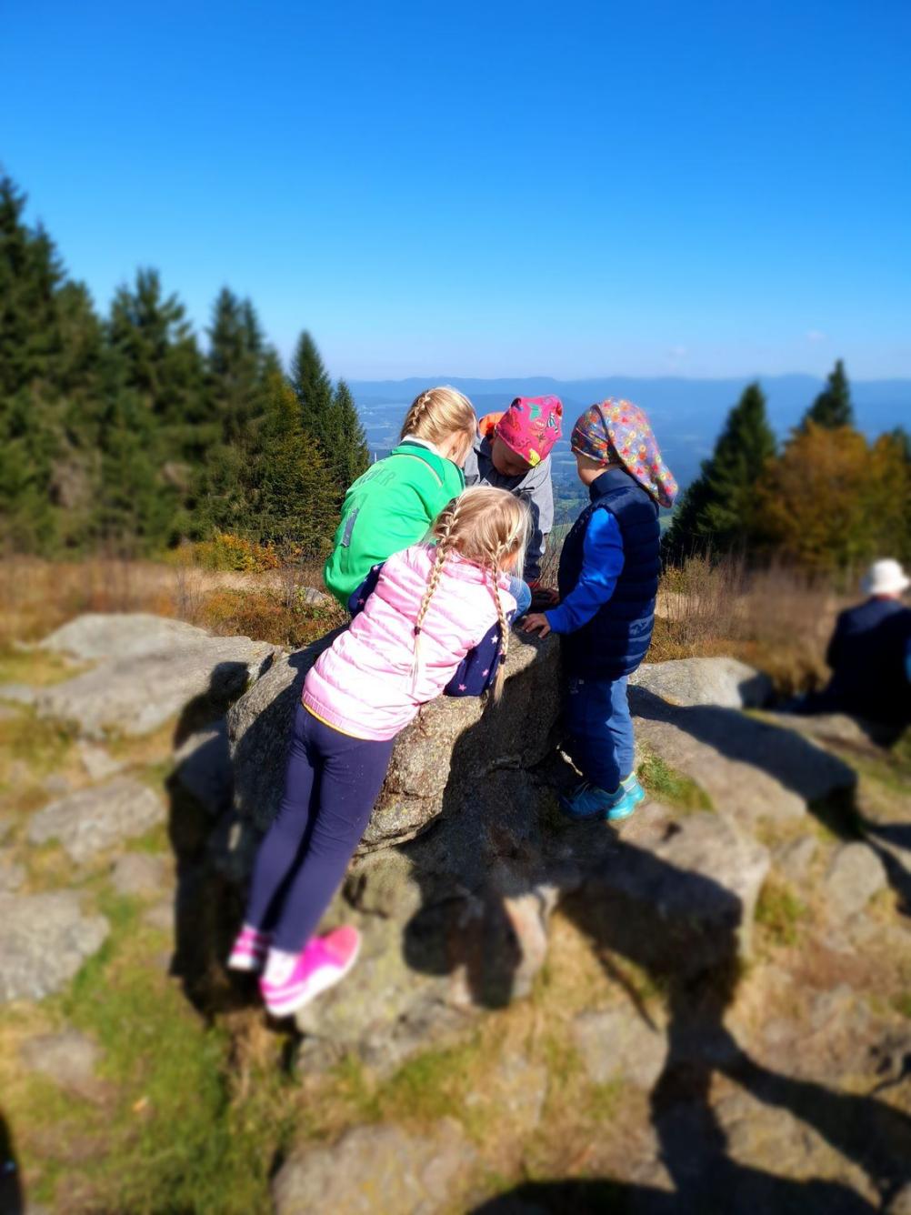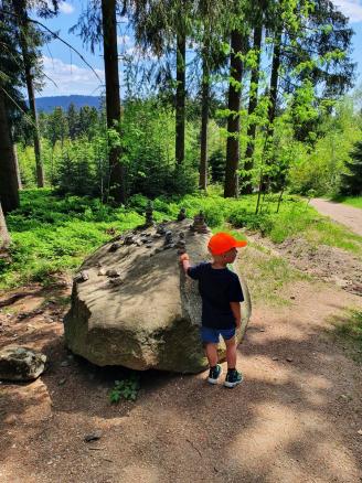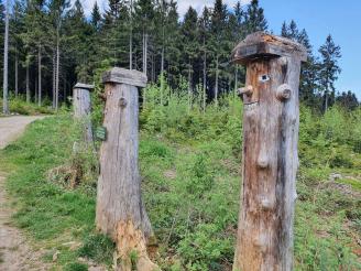 Leichte Wanderung über den Saustein zum Pröllergipfel. Ideal für Familien, die mit Kindern unterwegs sind. Der Saustein 955 m bietet eine herrliche Aussicht und eine kleines Brotzeitbankerl. Auf dem Weg zum Pröller befinden sich einige lustige Figuren, die aus Baumstöcken gefertigt wurden. Das eine oder andere Bächlein muss überquert werden und zum Schluss wird man am Pröllergipfel 1048 m mit einer traumhaften Aussicht auf Arber, Osser, Rachel und Kaitersberg belohnt. Variante mit Einkehr: Vom Pröllergipfel lohnt sich der Abstecher zum Prellerhaus und von dort zurück...