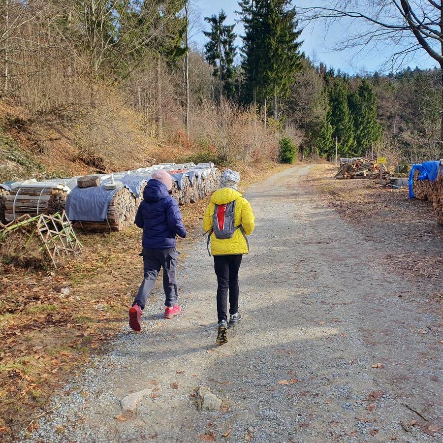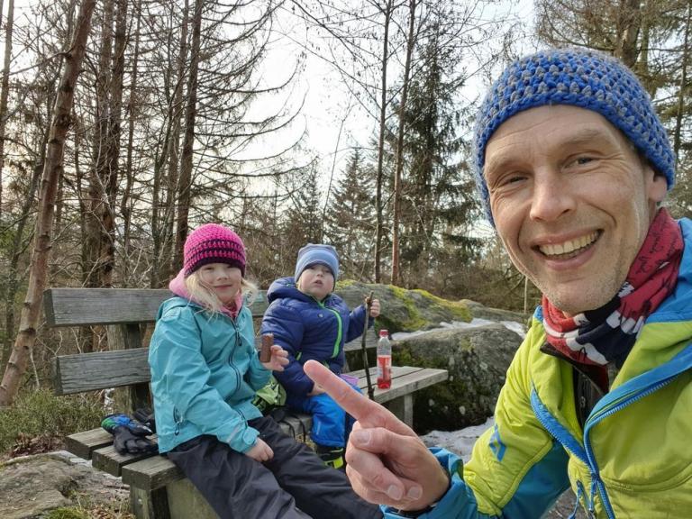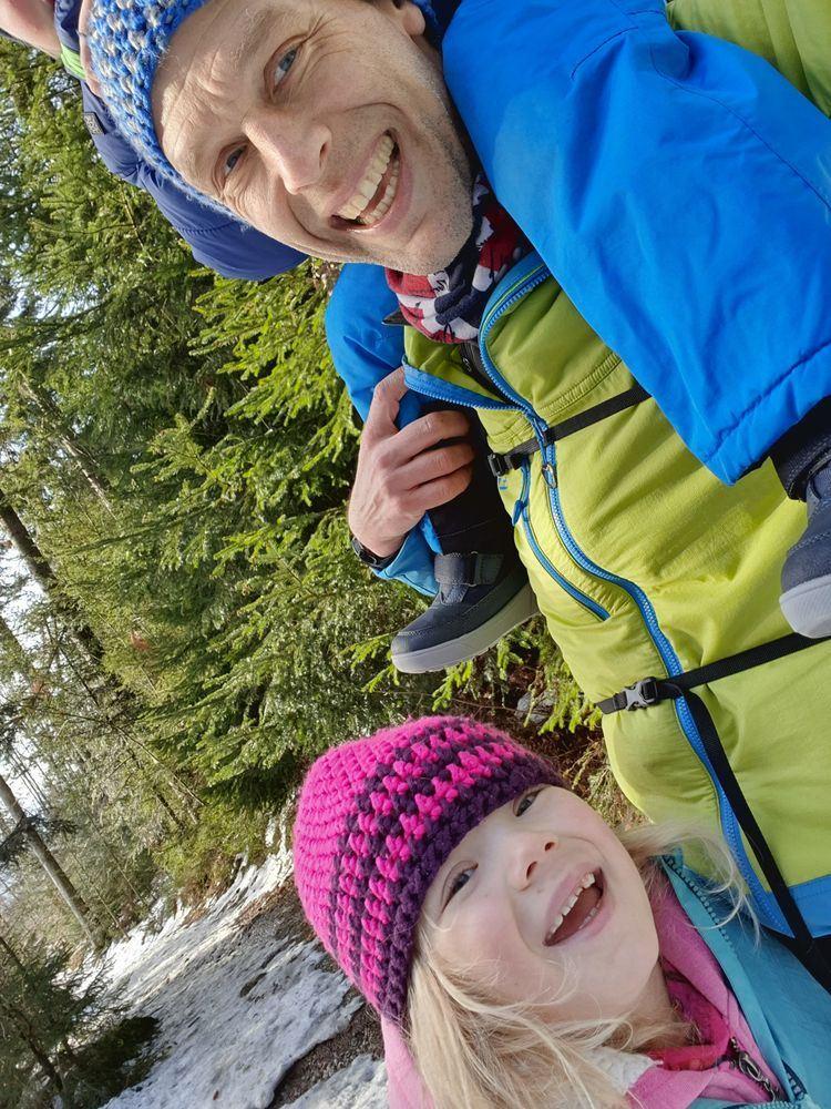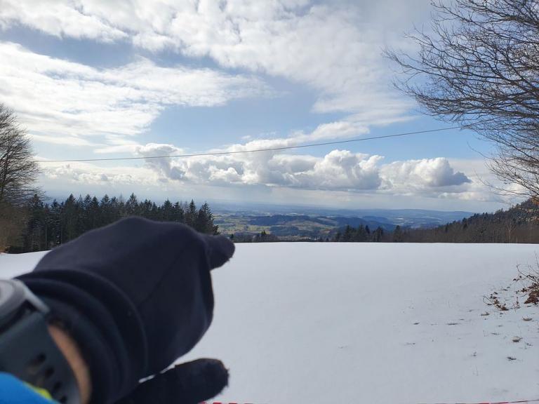 Der Frühling war schon Anfang Februar am Grandsberg eingekehrt. Zusammen mit Emmas Freundin Emily liefen und wanderten wir zum Grimmeisenweiher und über den Mühlgrabenweg auf den Schopfgipfel. Angenehme Temperaturen begleiteten uns. Die Vögel zwitscherten und der Mühlgraben plätscherte ein Frühlingslied. Das steile Stück zum Schopf nutze ich für Bergsprints. Immer wieder lief ich zu den anderen zurück, um bergauf wieder den Puls nach oben schießen zu lassen. Nach 1 1/2 Stunden erreichten wir den Schopfgipfel mit seinen stolzen 920 Metern. Zurück am Grandsbergparkplatz konnten wir 6,5 km und 230 Höhenmeter verbuchen. Klar, dass wir uns eine Stärkung im Gasthof Menauer verdient hatten...