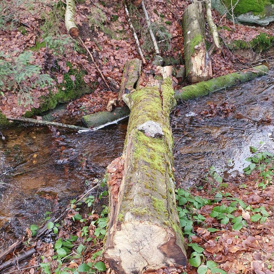 Dann sprangen wir über den Mühlgraben, um auf den kleinen wurzeligen Pfad zu gelangen. Es machte uns riesigen Spaß über Wurzeln und Steine zu springen und gemeinsam zu laufen. Aber dann kam eine Erdwespe und die hatte es auf Timi abgesehen und stach den kleinen Mann in die Wade. Timi war da eher weniger begeistert. Wir kühlten die Einstichstelle mit dem kühlen Wasser aus dem Bach. ich hatte ein Erste Hilfe Set dabei. Somit verbanden Emma und ich das Bein von Timi.