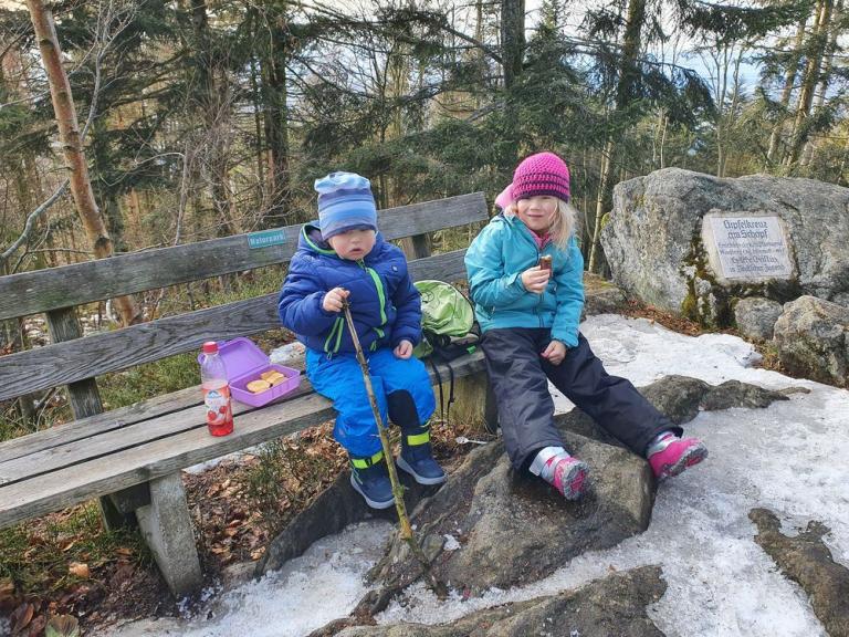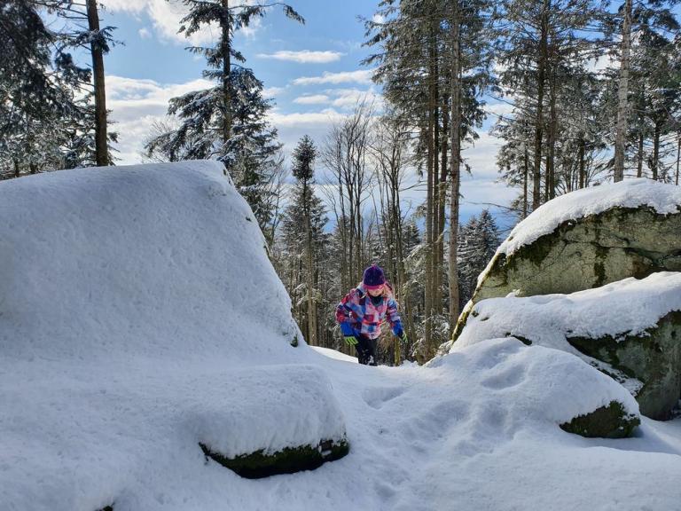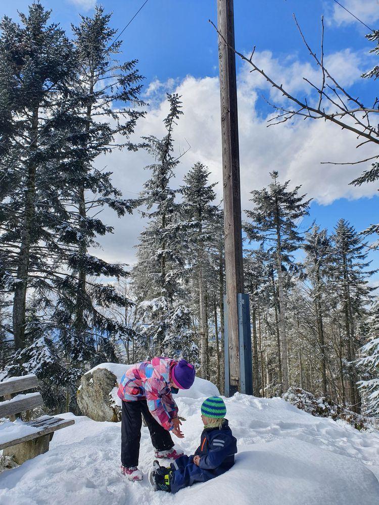 Noch immer herrschte am Grandsberg Winter. Zusammen mit meinen Zwergen wanderte ich ab Grandsberg auf den Schopfgipfel. Wir hatten herrliches Wetter im Winterwonderland. Vor allem hatten wir viel Spaß zusammen und eine Gipfelbrotzeit durfte ebenfalls nicht fehlen.