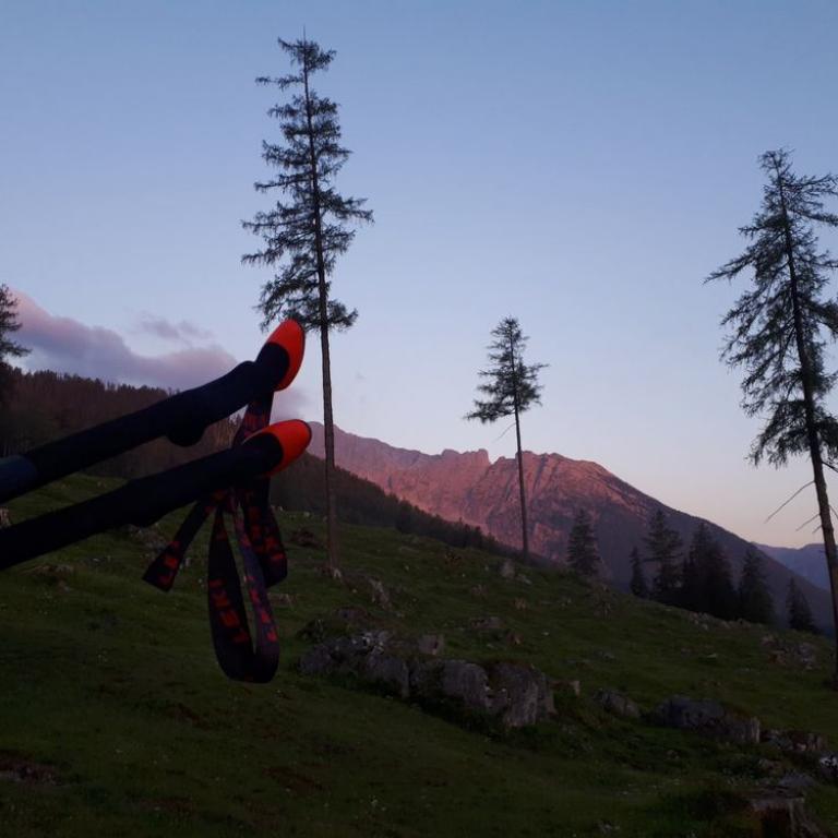 Das Projekt Watzmann Überschreitung in der Speed Variante steht ja schon seit Jahren auf meiner Liste mit verrückten Dingen. Vor fast 10 Jahren überschritt ich mit meiner Frau und meinem Kumpel Woife den Gebirgsstock. In den letzten Jahren waren immer mehr Trailverrückte, wie ich unterwegs, um die Bestzeiten zu unterbieten. Start ist die Wimbachgriesbrücke und das Ziel ebenfalls. Dazwischen liegt der Watzmann, 25,5 km mit 2200 Höhenmetern und einem schwindelerregendem Grat zwischen Hocheck und Südspitze :-) Die Berchtesgadener Berggranate Toni Palzer hält den aktuellen Rekord mit 2h 47 min. Klar werde ich an den Toni nicht annähernd heran kommen, aber mein Plan war, die auf ca. 14 Stunden für den normalen Wanderer angegebene Strecke in unter 6 Stunden zu schaffen. Voraussetzung für die Tour ist absolute Schwindelfreiheit, Trittsicherheit und natürlich eine Menge Kondition :-) Am späten Donnerstagabend fuhr ich nach einer MTB Tour mit meinem Caddy und meiner Trailausrüstung nach Berchtesgaden. Um kurz vor 12 Uhr war ich dann am Wanderparkplatz bei der Wimbachgriesbrücke. Als ich mich gerade in meinen Schlafsack kuscheln wollte, klopfte jemand am Fenster meines Autos. Ein verirrter Wanderer stand vor meinem Caddy. Er war fix und alle, der Handyakku, Getränke und Essen schon lange alle. Irgendwie hatte er sich tatsächlich verlaufen und ist vom Königssee über den Watzmann gestiegen und nach 18 Stunden hier vor meinem Auto angekommen. Ich rief ihm ein Taxi, in das er total erschöpft gefallen ist. Tja manche Leute unterschätzen Entfernungen und Höhenmeter und sind auch mit der Wegführung nicht vertraut...