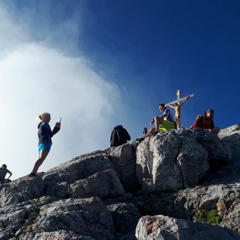Mitten in der Nacht war mein Auto noch das einzige am Parkplatz, aber um halb 5 Uhr früh war der Parkplatz tatsächlich voll. Alle wollten den Watzmann an einem Tag überschreiten. Ich hatte keine große Eile. Es klingt arrogant, aber ich werde die Meisten noch vor dem Hocheckgipfel einholen :-) Nach einem kleinen Frühstück und Morgentoilette lief ich um 5 Uhr los. Zuerst einen Forstweg nach oben. Da es noch finster war, verpasste ich den direkten Abzweiger zur Stubenalm und lief deshalb auf der Forststraße weiter. Die Forststraße zur Alm war sicher länger, dafür aber nicht so steil und deshalb gut zu laufen. Ab der Stubenalm ging es dann in den teilweise steilen Trail bis zum Watzmannhaus auf 1930 Hm. Auf dieser Strecke konnte ich schon viele Wanderer überholen, die mir dann am Grat nicht mehr in die Quere kommen würden. Nach 1h 31 min erreichte ich das Watzmannhaus. Mittlerweile war die Sonne hinter den Bergen aufgegangen und die Aussicht traumhaft. Diese war aber nicht wirklich von Bedeutung für mich, da ich mir in erster Linie beweisen wollte, wie schnell ich die Königsstrecke schaffen würde. Weiter lief bzw. stieg ich bis zum Hocheck nach oben. Nach gesamt 2 Stunden und 29 Minuten stand ich auf dem ersten Watzmanngipfel mit seinen 2651 Metern. Viele Wanderer waren nach den 2000 Hm Aufstieg schon ziemlich am Ende und brauchten erst eine Rast am Gipfel. Ich machte keine Pause, sondern stieg gleich in den Watzmanngrat ein. Teilweise ist der Grat seilversichert, wo ich natürlich vorsichtig durch kraxelte. Aber viele, zwar ausgesetzte Passagen, waren gut zu laufen. Nach weiteren 11 Minuten stand ich auch schon auf der Mittelspitze mit ihren 2713 m. Das ging aber flott. Immer wieder musste ich Bergsteiger bzw. Wanderer überholen. Manche kämpften sich mit Klettersteigset bewaffnet durch die wenigen Seilversicherungen. Auch wenn ich schnell unterwegs war, konnte ich trotzdem das Panorama genießen. Auf der Königsseeseite hingen harmlose Wolken und auf der Wimbachgriesseite war blauer Himmel. Der Kontrast war atemberauben und bot ein spektakuläres Bild. Bis ich mich versah, stand ich auch schon auf dem letzten Watzmanngipfel, der Südspitze mit ihren 2712 m. Aktuell war ich 3h 24 min unterwegs. Am Gipfel saßen noch ein paar Leute, aber beim steilen Abstieg ins Wimbachgries war kein einziger mehr unterwegs. Ich hatte alle überholt :-) Der geröllige Abstieg war ziemlich nervig und rutschig und nach 4h 40 min Minuten kam ich an der Wimbachgrieshütte an. Ab hier führte ein Forstweg durch das lange Wimbachgriestal. Ich lief teilweise unter einer 4 er Pace und war mit mir und meiner Zeit sehr zufrieden. Bis zu diesem Zeitpunkt. Auf einmal lief ein weiterer Trailläufer bei einer 3:50 er Pace auf mich auf. Er hatte weder Laufrucksack, Stöcke, Getränke noch sonst irgendetwas dabei und war zum aktuellen Zeitpunkt 3h 10 min unterwegs. Wir unterhielten uns kurz und dann sauste er davon und ich mit einer anscheinend langsamen 3:50 er Pace weiter :-) Nach 5 Stunden 14 Minuten 52 Sekunden 25,5 km und 2200 Höhenmetern erreichte ich dann um 10:30 Uhr vormittags mein Ziel, meinen Ausgangspunkt, die Wimbachgriesbrücke. Ich war zufrieden mit der Zeit, aber sicherlich war dies noch ausbaufähig. Ich wusch mich im eiskalten Gebirgsbach und kaufte mir in einem Restaurant zwei Radler, bevor ich die Heimreise antrat...