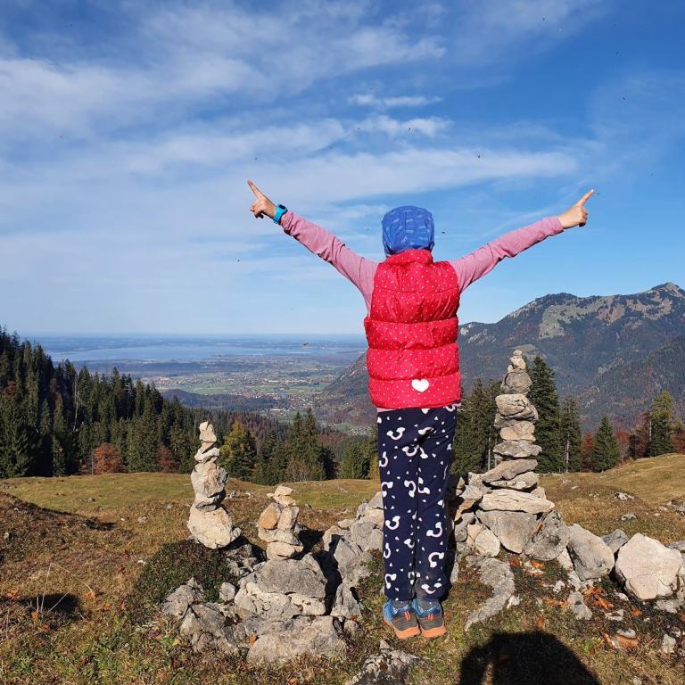 Die Kinder waren begeistert von den drei Almhütten. Die Frankenalm und Stoibenmöseralm hatten auch noch zur Freude unserer Kinder Spielplätze zu bieten. Einen tollen Ausblick auf den Chiemsee konnten wir oberhalb der Stoibenmöseralm genießen.
