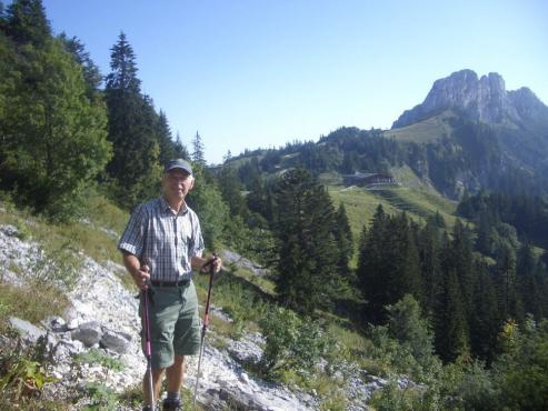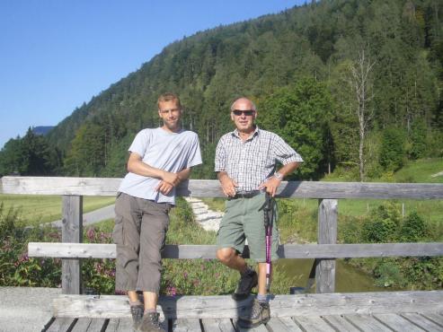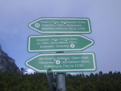Um halb 7 fuhren wir los in Richtung München und weiter Richtung Salzburg. Von dort am Chiemsee vorbei nach Aschau am Chiemsee. Wir parkten an der Kampenwandbahn, mit der es gleich um 9 Uhr nach oben ging. An der Bergstation angelangt genossen wir zuerst einmal den herrlichen Ausblick Richtung Chiemsee und die Bayrischen Voralpen. Leider war es etws trüb und auch ein paar Wolken waren zu sehen. Bei einem imposanten Fernblick ins Voralpenland ließen wir die Kampenwand "links liegen und wählten den Weg Nr. 20 in Richtung Dalsenalm. Dieser Weg führt sehr schön durch einen Bergwald, über Blumenwiesen hinweg, stetig nach unten. Hier entdeckten wir auch 2 Murmeltiere, die sich schön beobachten liesen. Die Dalsenalm liegt auf rund 1000 m. Dort angekommen durchschreitet man gleichsam einen grünen Sattel, bis auf der gegenüberliegenden Seite der Gegenanstieg auf den Weitlahnerkopf, 1615m, ansteht. Die Rund 600 HM führen sehr steil nach oben. Zum Ende geht man lange durch Krüppelkieferhaine. Um ca. 12 Uhr erreichten wir einen kleinen Sattel unterhalb des Gipfels. Von dort geht es nun die letzten ca. 100 Höhenmeter seilversichert über einen kleinen Steig bis direkt unter den Gipfel. Der Lohn der Mühe ist der Ausblick auf die umliegenden Gipfel. Nach einer Mittagspause ging es nun weiter in Richtung Geigelstein. Er ist einer der höchsten Gipfel im Chiemgau und gilt gemeinhin als hervorragender Aussichtsberg, insbesondere auf das gegenüberliegende Kaisergebirge. Auf dem Weg passierten wir die unter Naturschutz stehende Roßalm (1600m), eine der höchstgelegenen Almen im Chiemgau. Über einen Panoramaweg erreicht man dann den Aufstiegsweg zum Geigelstein (1813 m). Die letzten Meter ziehen sich etwas zäh auf den Gipfel hinauf. Leider war der Gipfel völlig in Wolken. Nur kurz kam die Sonne durch. Wir machten Rast und aßen unsere letzten Brotzeitreste. Bei schönen Wetter kann man dann den freien Rundumblick genießen. Nach Süden zum Kaiser und am Horizont zu den Hohen Tauern. Im Osten das Watzmann-Massiv und im Norden der Chiemsee. Vom Geigelstein aus folgten wir dann dem Abstieg in Richtung Sachrang. Die auf diesem Weg liegende Priener Hütte war bewirtschaftet und daher kehrten wir kurz auf eine Radler ein. Wir wanderten weiter Richtung Sachrang. Über einen breiten Fahrweg führte der Weg dann stetig hinab ins Tal. Am Talboden erreichten wir dann gegen 17 Uhr die Verbindungsstraße von Sachrang nach Aschau. Um 17.30 Uhr ging dann der Bus zurück zum Auto.