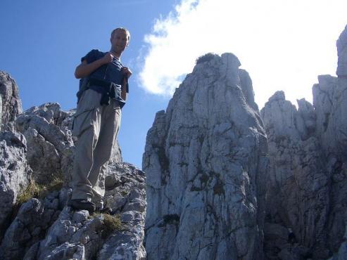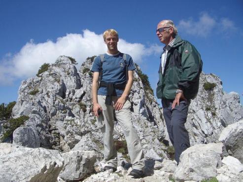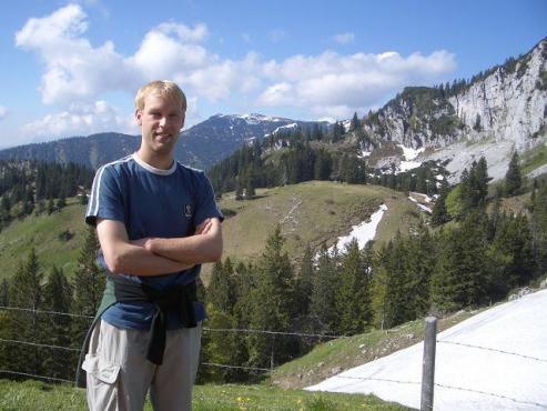 2. Tag: Für "günstige" 13 Euro pro Person rauf und runter stiegen wir dann am nächsten Tag in die etwas altertümliche Gondel der Kampenwandbahn. Nach ca. 10 Minuten Fahrt kamen wir an der Bergstation an. Das Wetter war an diesem Tag herrlich sonnig. Wir marschierten zur Steinling-Alm, wo meine Mama sitzen blieb und mein Papa und ich abzweigten zum Aufstieg auf die Kampenwand. Es ging ziemlich steil los über ein Geröllfeld auf dem auch noch vereinzelt Schnee liegt. Dann ging es weiter zwischen Steinschluchten und Kletterfelsen in Richtung Gipfel. Wir hatten ein herrliches Panorama. Über ein paar Stahlseile gelangten wir dann auf den gut befestigten Gipfel der Kampenwand (1669 m). Hier machen wir Rast und bewunderten lange die umliegenden Berge. Viele davon waren noch schneebedeckt und auch teilweise in Wolken. Nun ging es wieder abwärts über den linken Kamm der Kampenwand. Der erste Teil ist wieder mit Stahlseile gesichert und weiter gehts durch ein Latschenfeld. Wir umrunden die Kampenwand und gelangen an der Steinlingkappelle vorbei wieder zu der Steinling-Alm, wo meine Mama auf uns wartet. Mit der Kampenwandbahn fuhren wir dann am Spätnachmittag wieder ins Tal.