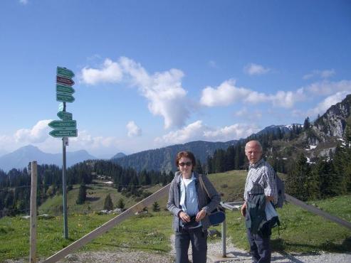 1. Tag: Am 10 Juni holten mich meine Eltern um 8.30 Uhr bei mir Zuhause ab. Es ging über die Autobahn in Richtung München, dann über die Bundestraße nach Rosenheim und dann nach Aschau am Chiemsee. Sie ließen mich am Parkplatz Kampenwandbahn aussteigen. Meine Eltern fuhren weiter an einen nahegelegenen See und ich machte mich auf den Aufstieg zur Bergstation. Zuerst ging es durch dichten Wald sehr steil aufwärts. Immer wieder gelangt man an Almwiesen vorbei. Das Wetter war bewölkt aber doch noch zum Teil sonnig. Nach ca. 2 1/2 Stunden Aufstieg erreichte ich die Bergstation auf 1450 m Höhe. Leider ist es nur noch bewölkt und es weht ein eisiger Wind, so das ich einen Pullover vertragen konnte. Da es mir zu kühl wurde machte ich mich wieder an den Abstieg. In einer Almhütte auf halber Strecke machte ich Rast und kaufte mir eine frische Milch und Apfelstrudel. Gestärkt gings dann hinunter ins Tal zum Parkplatz.