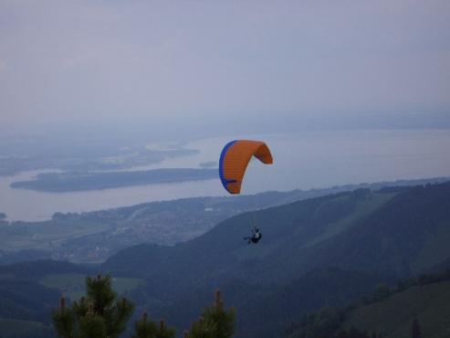 Info: Die Kampenwand ist ein 1669 m hoher Berggipfel der Chiemgauer Alpen (Bayern). Im Winter ist hier ein kleines Skigebiet, im Sommer das Revier von Drachenfliegern und Paragleitern. Auch bei Kletterern, Wanderern und Mountainbikern ist der Berg beliebt. Insbesondere die Südseite des Berges bietet zahlreiche Kletterrouten aller Schwierigkeitsgrade. Der Name leitet sich von ihrem Aussehen ab. Der gezackte Gipfelgrat erinnert an den Kamm auf dem Kopf eines Hahnes.