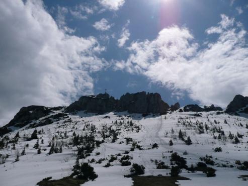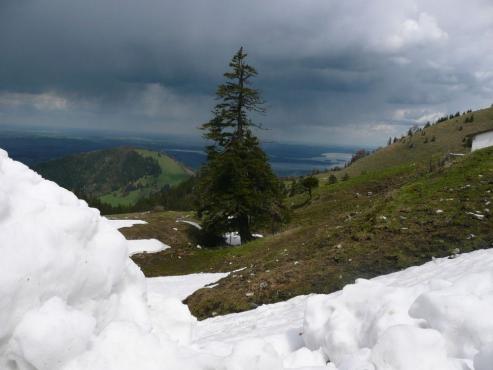 Nach einem steilem Anstieg gelangten wir zur bewirtschafteten Gorialm (1170m). Von hier mussten wir uns dann teilweise durch den Schnee zur Steinlingalm (1473 Höhenmeter) durch kämpfen. Kurzzeitig sah es nach Regen aus, aber wir hatten Glück und blieben davon verschont. In der Alm gab es Wurstsalat und eine Schorle. Zum Gipfel stiegen wir nicht auf, da einfach zu viel Schnee lag. Der Abstieg zum Parkplatz dauerte ca. 1 1/2 Stunden.