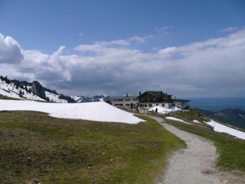 Abstieg: Auf dem Gipfel führt ein Weg weiter südlich um die Kampenwand, von wo man wieder zur Steinlingalm gelangt. Von hier geht es wieder den gleichen Weg talwärts.