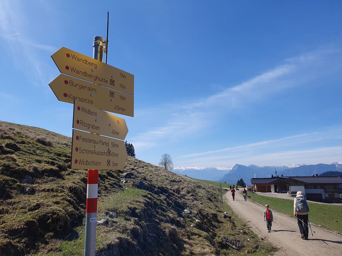 Aufstieg bis Wildbichler Alm 1040 m: 1h (300 Hm) Karspitze 1241 m: 45 min (240 Hm)