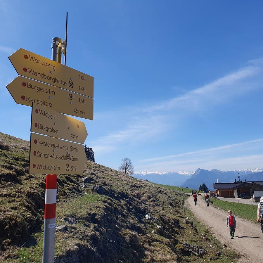 Die Karspitze 1241 m ist ein Ausflugsziel für Jung und Alt. Die Wildbichler Alm bietet eine leckere Hüttenbrotzeit und einen schönen Spielplatz für die Kinder. Der Aufstieg zur Alm ist auch mit dem Kinderwagen zu meistern. Der Spitzstein liegt direkt gegenüber. Die Karspitze bietet tolle Ausblicke auf den Zahmen Kaiser und Rofan. Als Familienwanderung ist die Tour sehr zu empfehlen.