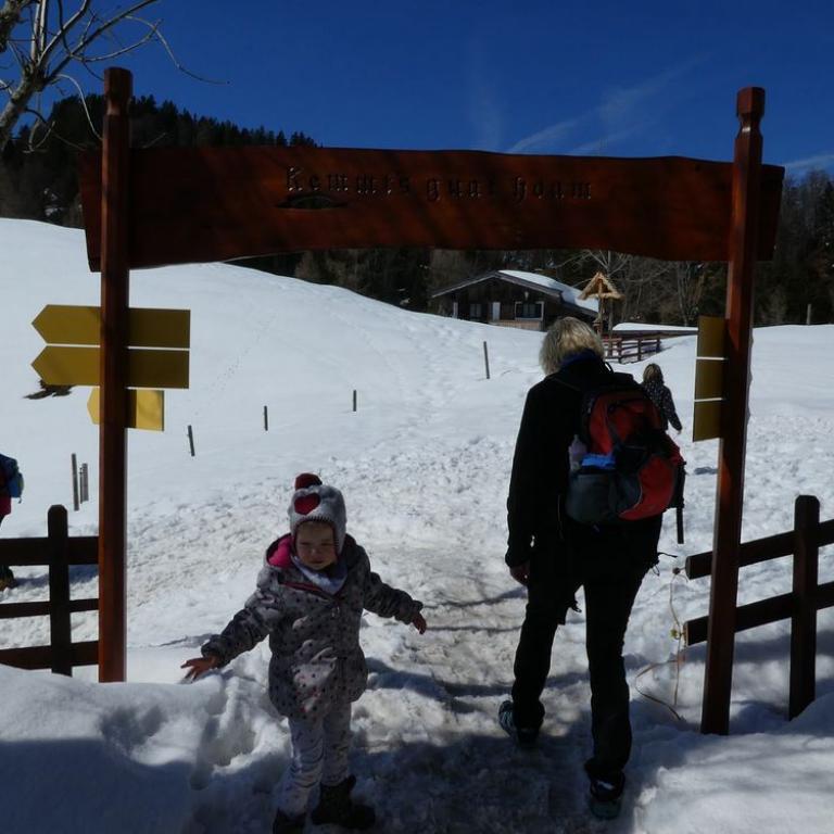 Meistens ist das Wetter in den Weihnachtsferien sonnig und schön. Auch in diesem Jahr hatten wir großes Glück mit dem Wetter. Es gibt viele Wanderwege, um zur traumhaft gelegenen Taubenseehütte in den Chiemgauer Alpen zu gelangen. wir starteten am Wanderparkplatz Mühlberg / Schafflerhof etwas oberhalb von Kössen. Von dort wanderten wir zur Rinderbrachalm und weiter zur Frankenalm, die im Winter nicht bewirtschaftet sind. Ein kleiner Wanderweg führt zuerst durch den Wald und zum Schluss einen Forstweg etwas steiler nach oben bis zur Taubenseehütte. Wir kraxelten über und unter umgefallene Bäume. Ein perfektes Abenteuer für die Mäuse. Je höher wir kamen, desto mehr Schnee trafen wir an. In der traumhaft gelegenen Hütte bekamen wir noch einen gemütlichen Platz und aßen Kaiserschmarrn und Kuchen. Frisch gestärkt wanderten wir über die Moosenhütte zurück zum Parkplatz.