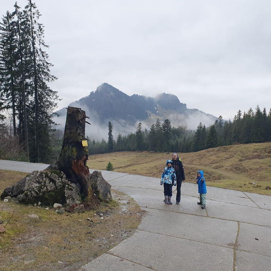 Papa mit den Mäusen über das Wochenende in den Chiemgauer Alpen. Natürlich darf auch eine Wanderung nicht fehlen. Im November haben die meisten Almen geschlossen, aber die Wagneralm hatte am Wochenende offen. Schon auf der Fahrt zum Wanderparkplatz Gammern sahen wir die schneebedeckten Berge. Es hatte letzte Nacht einiges in den höheren Lagen geschneit. Ab ca. 800 m begann die Schneegrenze und genau dort liegt der Wanderparkplatz.