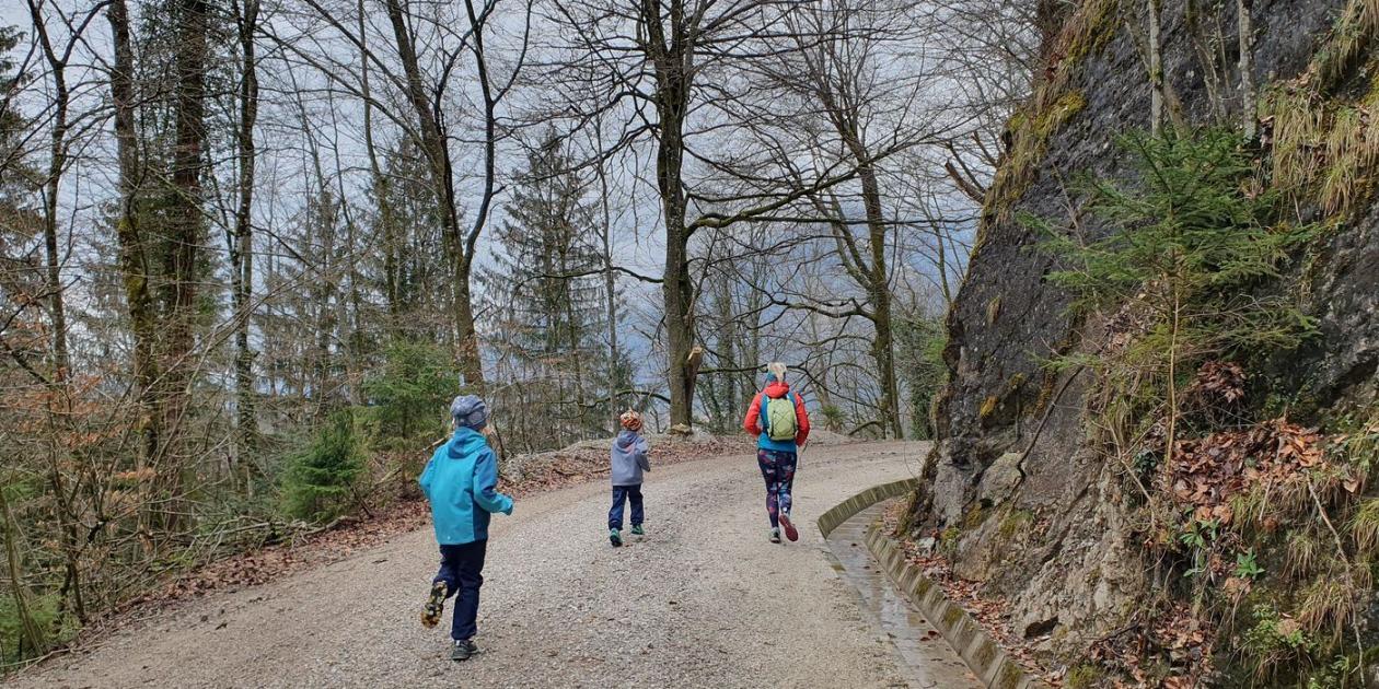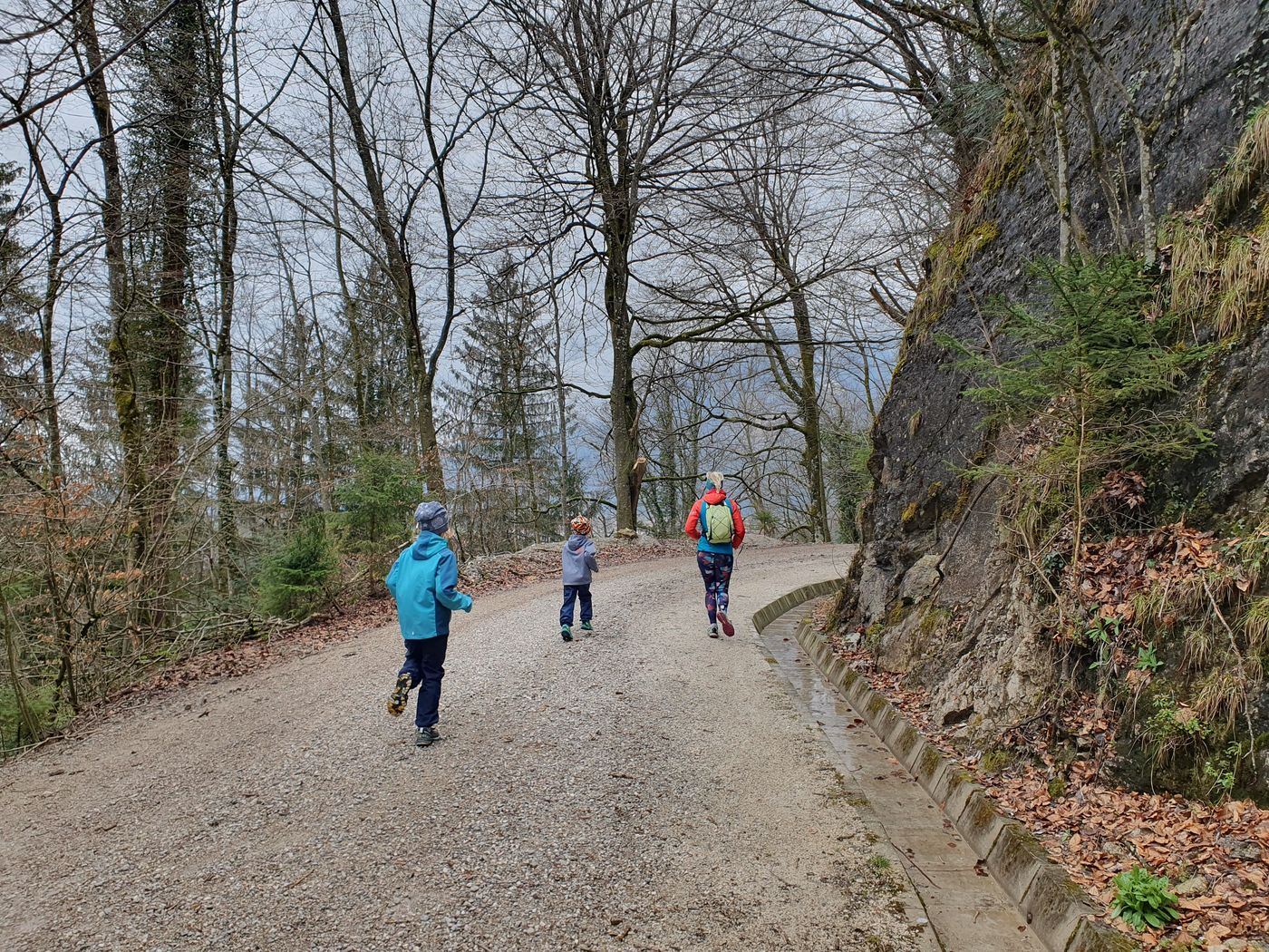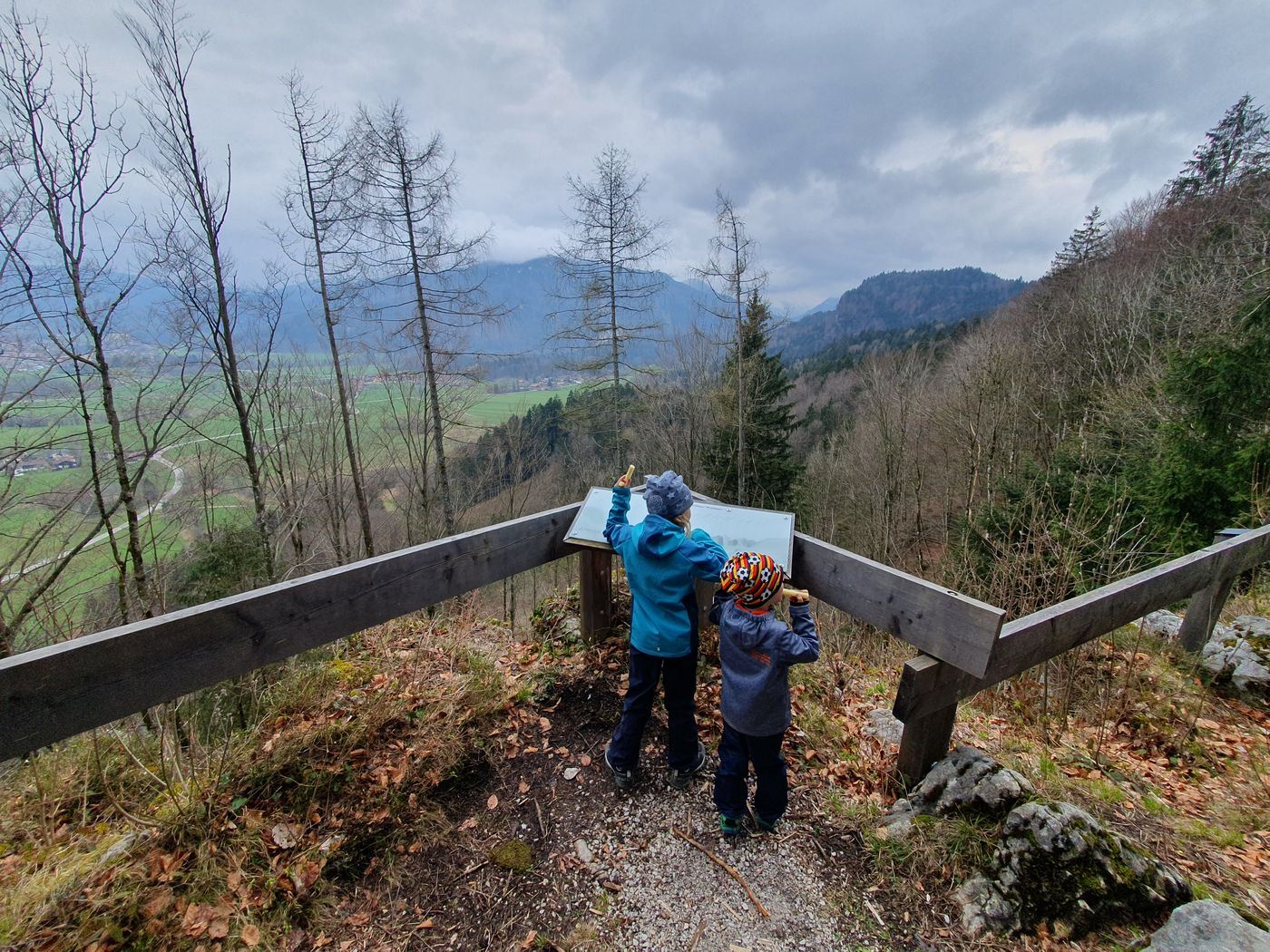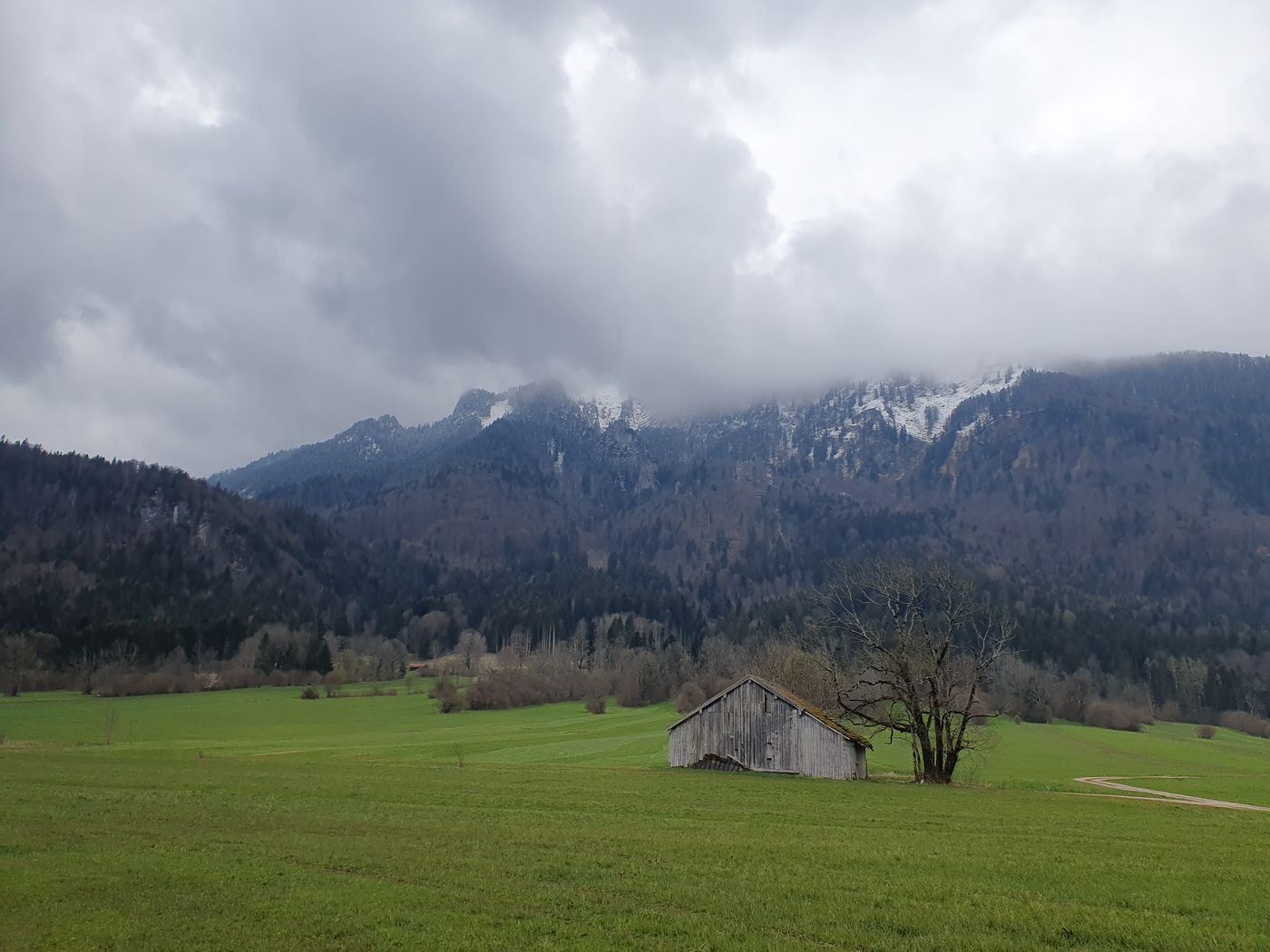 Da auf den Bergen noch viel Schnee lag, suchten wir eine Wanderung, die nicht zu hoch hinaus ging. Ich lief schon öfter am Ausblick "Kaiserblick" vorbei, aber gewandert waren wir noch nie zu diesem schönen Platz. Somit joggten und wanderten wir zusammen zum Kaiserblick. Hier fanden wir einen Geocache und marschierten dann auf tollen Trails nach unten bis zum Weiler Lanzing. Brigitte lief über Wurzelpfade über Marquartstein bis zum Ausgangspunkt und holte das Auto.