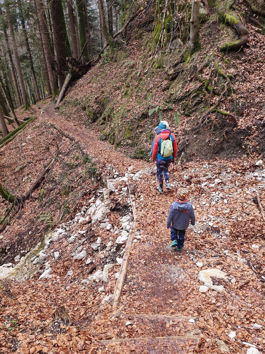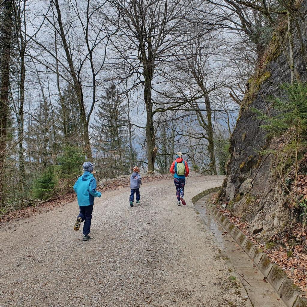 Ich wanderte mit den Kindern zum Rait`ner Wirt, der leider Nachmittag geschlossen hatte. Gut das ich im Rucksack eine kleine Brotzeit dabei hatte. In Unterwössen fanden wir das gemütlich Voglwuid. Brigitte gabelte uns kurz vor dem Ziel auf. Zusammen gingen wir in das gemütliche Café und aßen Kuchen, bevor wir zurück in unsere Ferienwohnung in Grassau fuhren.