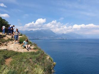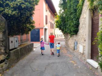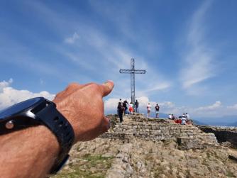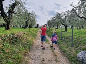 Variante 1: Wer sich für einen schnellen Aufstieg auf den Rocca di Manerba entscheidet, ist gut beraten am Museumsparkplatz zu parken und den angelegten Weg zu folgen. Hier ist der Abstieg wie Aufstieg. Tipp: Sonnencreme nicht vergessen, da man während der gesamten Wanderung der italienischen Sonne ausgesetzt ist. Die weitaus schönere Variante 2 stellt eine Rundtour mit Start in Montinelle dar. Wenn man vom Parkplatz in Montinelle an der Piazzale V. Simonati ein paar Meter nach unten geht, befindet sich auf der rechten Seite das Schild „Parco Archeologico Naturalistico“. Diesem Schild folgt man bis zum Museum. Hier befindet sich auch der Museumsparkplatz. Der Weg vom Parkplatz ist geteert und somit auch Kinderwagentauglich. Meine Empfehlung ist natürlich eine Kraxe bzw. Kindertrage zu verwenden. Zum Schluss kann man über einen kleinen Pfad oder über eine steile Holztreppe auf den Gipfel steigen. Der Aufstieg dauert ca. 30 Minuten. Auf dem Gipfel befinden sich noch Reste einer alten Burg. immer wieder geben Infotafeln Aufschluss, was die verfallenen Gebäude für eine Bedeutung haben. Wenn man über die alten Mauerreste kraxelt, gelangt man zum Gipfelkreuz. Die Aussicht ist gigantisch. Bei guter Sicht kann man bis Riva del Garda und zum Monte Baldo sehen. Um nicht wieder den gleichen Weg zurückgehen zu müssen, kann ich empfehlen den steilen Weg an der Nordostseite hinunter zu wandern. Hier ist aber etwas Trittsicherheit gefragt. Unten gelangt man dann in einen Wald. An einer Kreuzung befindet sich eine große Infotafel mit einer Wanderkarte. Hier hat man die Möglichkeit nach rechts abzubiegen und über flache Pfade und Wege, vorbei an Olivenbäumen, zurück nach Montinelle zu wandern. Für diese Tour habe ich die GPX Daten zum Download weiter unten bereitgestellt. Dauer dieser Tour ist 1 h 10 min, 4 km und 190 Hm. Eine weitere Variante 3 und meiner Meinung nach auch spannenderer Variante ist der Weg ab der Infotafel geradeaus weiter zum Aussichtspunkt Punta Sasso. Hier hat man eine ähnlich schöne Aussicht, wie vom Rocca Gipfel. Spektakulärer sind aber die direkt dort liegenden Steilklippen. Kleine und durchaus spektakuläre Pfade führen vorbei an einem alten Wehrturm, weiter bis zum Hafen von Manerba, dem Porto di Dusano. Hier befinden sich mehrere Gemütliche Restaurants. Ab dem Hafen führt eine Teerstraße nach rechts bergauf und zurück nach Montinelle. Diese Variante hat ca. 7 km, 250 Höhenmeter und dauert ca. 2 Stunden.