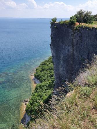 Rocca di Manerba: Der steilabfallende Felsen von Manerba, der Rocca di Manerba, ist zum einen das Wahrzeichen des südlichen Gardasees und andererseits ein beliebtes Ausflugsziel. Vor langer Zeit stand auf dem signifikanten Berg eine stolze Burg. Sie wird auf das achte Jahrhundert datiert. Nun sind nur noch Ruinen übrig. Die Reste der Burg liegen auf einem 216 m hohen Felsplateau, das weit in den Gardasee hineinreicht.