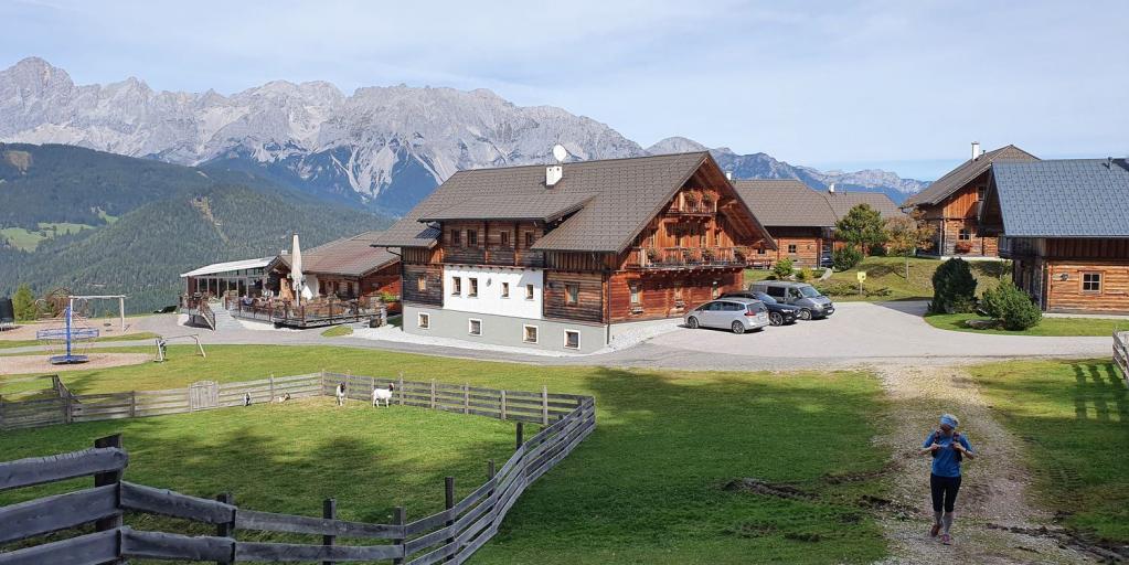 Da wir mit Freunden und Bekannten das Wochenende in einem Chalet der Schnepf`n Alm (Almwelt Austria) auf der Reiteralm verbringen wollten, fuhren wir am Vormittag in Richtung Österreich, genauer gesagt nach Schladming. Wir konnten das gemütliche Chalet für 8 Personen etwas früher beziehen und räumten unsere Sachen in unser Zimmer und Speisen und Getränke in die gut ausgestattete Küche. Das Chalet verfügt über einen Balkon mit Blick auf das Dachsteingebirge, Whirlpool, 4 Schlafzimmer mit je eigenem Bad, Küche, Aufenthaltsraum mit Holzofen und Grill. Die dazugehörige Schnepf`n Alm hat noch einen Wellness Bereich mit Sauna und ein Restaurant.