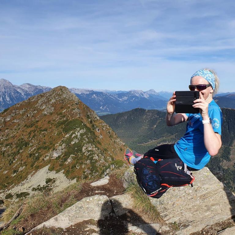 Wir verwandelten uns schnell in Trailläufer und starteten unsere Tour direkt ab der Schnepf`n Alm auf die Gasselhöhe 2001 m, Rippeteg 2126 m und Schober 2133 m. Genau 3 Stunden und 55 Minuten benötigten wir für die aussichtsreichen Trails über die drei Gipfel der Reiteralm. Insgesamt waren wir knapp über 15 Kilometer mit 1200 Höhenmeter auf teilweise anspruchsvollen Trails unterwegs.