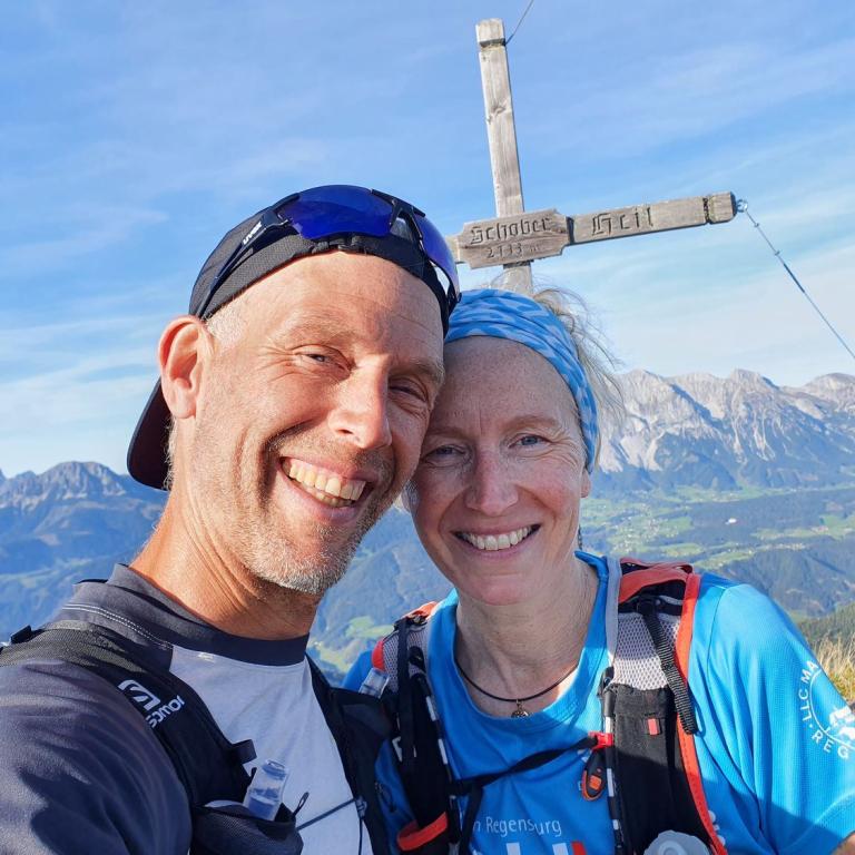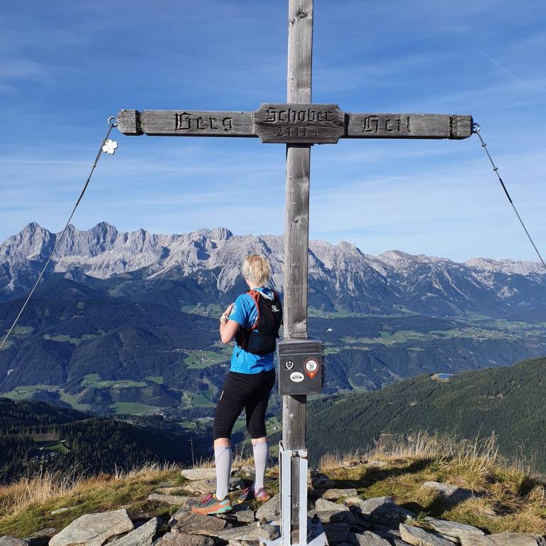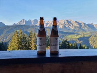 Die Tour hatte mit meiner Trailrun-Frau riesig Spaß gemacht. Ein Siegerbier mit Aussicht auf den Dachstein hatten wir uns redlich verdient. Später am Abend trudelten nach und nach unsere Freunde und Bekannten ein, so dass wir ein gemeinsames Abendessen in Form einer selbst zubereiteten Brotzeit genießen konnten.