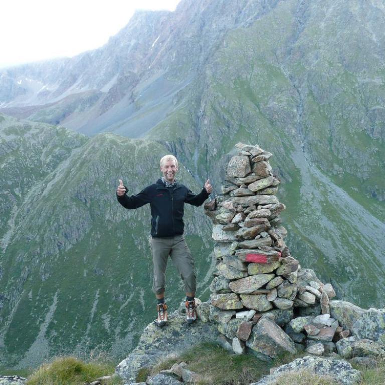 Auch der Sonntag sollte noch einen Gipfelerfolg bringen. Bei blauem Himmel und Sonneschein starteten wir teilweise ohne Rucksäcke von der Hütte in Richtung Sulzkogel, dem Hausberg an der Westseite der Amberger Hütte. Zuerst führte uns ein kleiner Wanderweg nach oben, der später in Blockkletterei überging. Nach ca. 2 Stunden standen auch schon am frühen Vormittag alle 9 Sektionsmitglieder auf dem 2796m hohen Sulzkogel, von wo aus wir einen herrlichen Blick auf die umliegenden Berge hatten. Ich konnte sogar ein paar Gämsen erspähen. Wir genossen die Ruhe und Aussicht auf dem Gipfel. nach ausgiebiger Rast stiegen wir wieder ab, holten unsere Rucksäcke und verabschiedeten uns von der Amberger Hütte in Richtung Tal. Auf halber Strecke kehrten wir noch in der Vorderen Sulzalm auf eine kurze Brotzeit und Radler ein. Um 14 Uhr erreichten wir wieder unsere Autos und traten die Heimreise an.