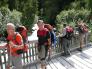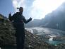 Um halb 7 saßen wir schon beim Frühstück und sprachen die Tour durch. Jeder hatte für alle Fälle Steigeisen im Rucksack und schon konnte um kurz nach 7 Uhr die Wanderung starten. Zuerst ging es an einem rauschendem Gebirgsbach entlang, in das Tal hinein. Nach kurzer Zeit führte uns der Weg auch schon stetig bergauf. Nach etwa einer halben Stunde dreht der Weg Richtung Osten und man steigt über die Moräne auf den Schwarzenbergsee zu. Das Wetter sah vielversprechend aus und die Sonne meinte es gut mit uns. Teilweise ging ein eisiger Wind aber die Aussicht war herrlich. Vor und rechts von uns der Gletscher, links der Schrankogel. An einer Abzweigung entschieden wir über den Südostgrat aufzusteigen und über den Westgrat wieder abzusteigen. Über Platten, Schrofen, Blöcke und Schotter stiegen wir bis zum Gipfelgrat, der teilweise etwas ausgesetzt ist. Leider zog es am Gipfel des Schrankogels etwas zu, was aber der Stimmung keinen Abbruch tat, da wir schließlich den zweithöchsten Berg der Stubaier Alpen mit seinen stolzen 3497 m bestiegen hatten. Immer wieder konnten wir einen Blick auf die benachbarten Gipfel und Gletscher erhaschen. Die Steigeisen brauchten wir nicht, trotz ein paar frischer Schneestellen, die aber nicht vereist waren. Nach kurzer Rast stiegen wir wieder den Westgrat über einige Kletterstellen (meist 1er Stellen und wenige 2er Stellen) ab. Am Schwarzenbergsee bogen wir in den Aufstiegsweg ein und nach einer 8 stündigen Bergtour errreichten wir wieder die Amberger Hütte. Hier feierten wir die Besteigung mit Weißbier und Radler auf der Terrasse bei herrlichem Sonnenschein. Auch dieser Tag ging mit einem lustigem Hüttenabend zu Ende.
