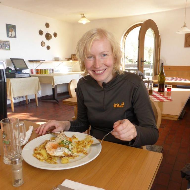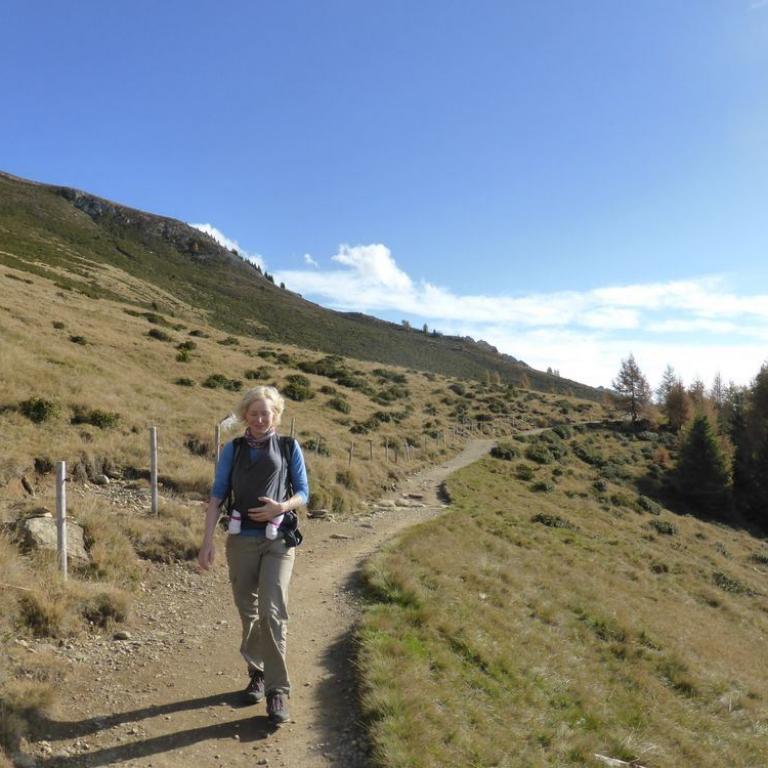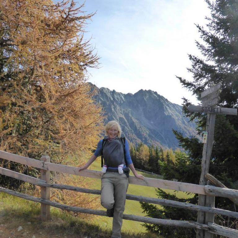 Da das Wetter morgen etwas schlechter werden sollte, suchten wir für den heutigen Tag nochmals eine Wanderung aus. Wir entschieden uns ins Passeiertal zu fahren und von dort über eine kurvige Strecke bis zur Mittelstation der Hirzer Seilbahn zu fahren. Hier mussten wir zuerst sehr steil nach oben. Leider wurden gerade die Almwiesen gedüngt und das gefiel unseren Nasen nicht so gut. Aber es ist der Duft der großen weiten Welt :-) Unser erstes Ziel war der Gasthof Grube auf 1800 m. Nach einer Stunde und 400 Hm erreichten wir die Wirtschaft und kehrten auch gleich ein. Emma bekam ihr Fläschchen und wir unsere Radler mit Apfelstrudel. Weiter ging es dann einen herrlichen Almweg bis zur Staffelhütte auf 1940 m. Hier konnte ich ausnahmsweise die Karte nicht lesen und wir gingen den falschen Weg. Zuerst über herrliche Almlandschaft und dann über einen Forstweg wieder Richtung Tal was leider nicht so gewollt war. Über einen steilen Pfad stiegen wir dann wieder zur Staffelhütte auf und dann weiter zur Bergstation Hirzer. Gerade noch rechtzeitig um unserer kleinen Maus das Fläschchen zu geben. Wir aßen auch leckere Spinatknödel und Kartoffel. Mit der Seilbahn fuhren wir dann wieder bis zur Mittelstation und mit dem Auto zurück nach Schenna.