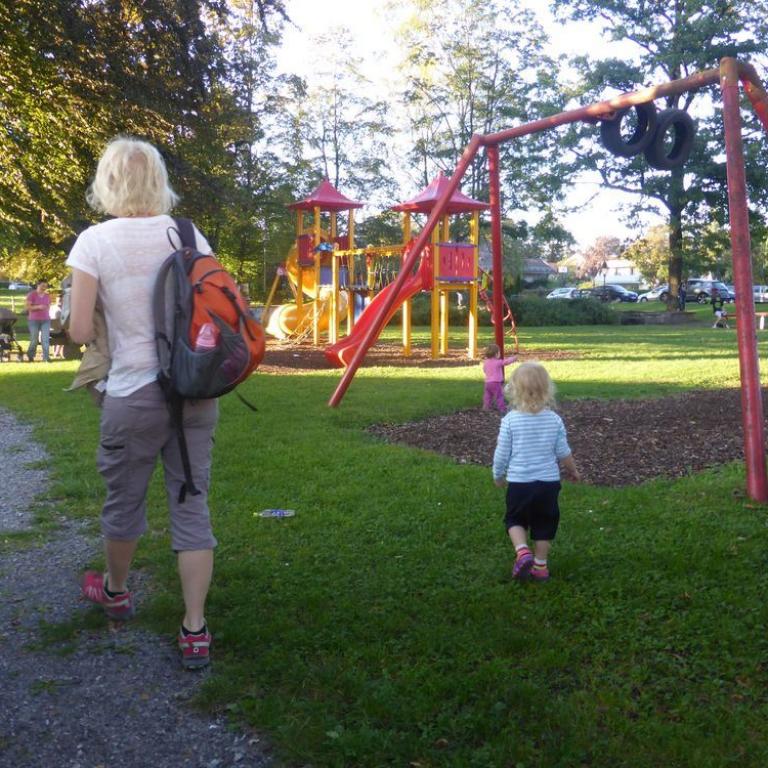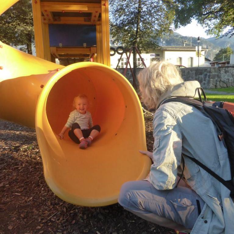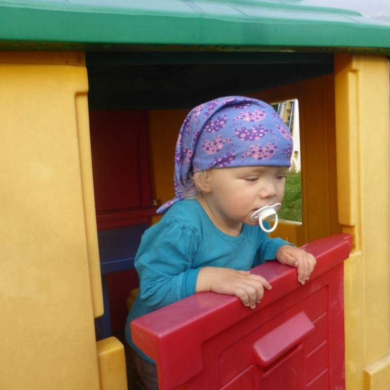 Wir standen schon um 6 Uhr auf, da unser kleiner Käfer schon ausgeschlafen war. In unserem Appartement bereitete Brigitte ein leckeres Frühstück zu. Natürlich begutachteten wir gleich danach den kleinen Spielplatz der zur Anlage gehört.