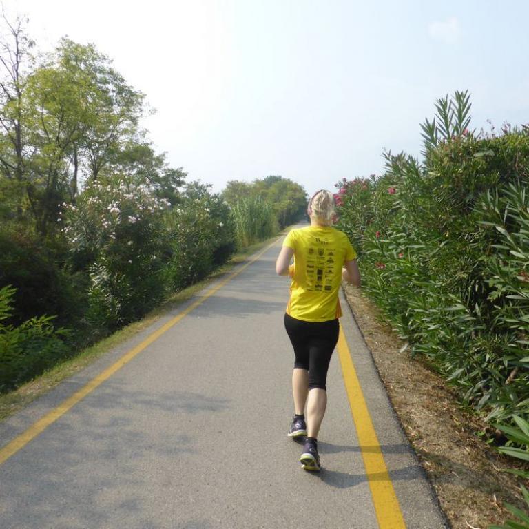 In Torbole gab ich mein MTB wieder ab. Zurück mussten meine Füße herhalten :-) Auf dem Radweg gab ich dann Gas mit Emma und Brigitte als Radbegleitung. Das machte Spaß. Ich überholte MTB ler und Rollerblader mit einer 3:52 Pace auf 6 Kilometer. In Arco zog ich mich um und wir schlenderten durch die Altstadt, aßen eine Kleinigkeit, gingen Einkaufen und natürlich auf den Spielplatz, bevor wir wieder zur Unterkunft radelten bzw. ich lief :-)