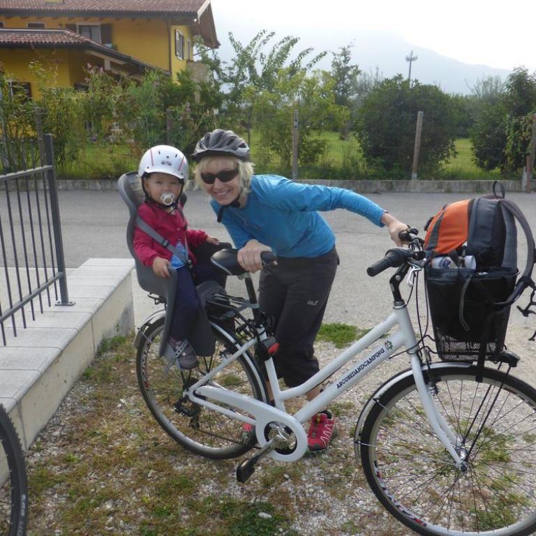 Nach einer wohltuenden Dusche fuhren wir noch mit dem Rad nach Arco. Brigitte testete ein Leihrad von der Unterkunft mit Kindersitz und ich nahm das MTB. Wir fuhren noch bis in die Altstadt von Arco um nochmals einen Spielplatz für Emma zu suchen :-) Den Abend ließen wir gemütlich auf der Couch ausklingen...