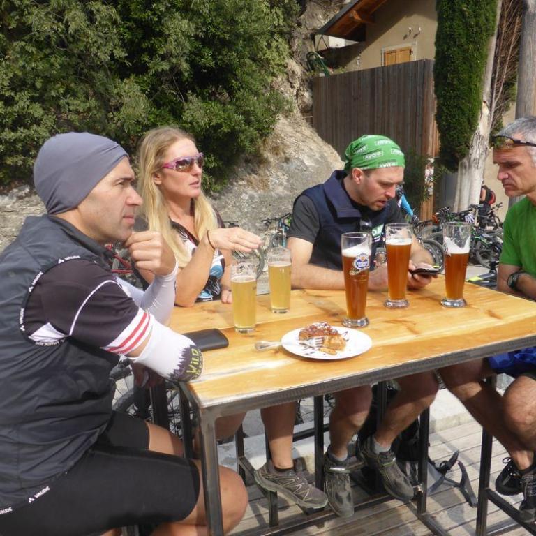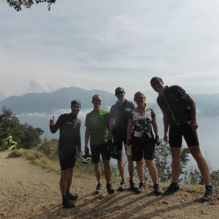 Auch heute ließen wir Tag gemütlich beginnen. Erst um 7 Uhr rollten wir aus den Federn und frühstückten. Um halb 10 Uhr wurde ich von der MTB Gruppe des Alpenvereins Straubing abgeholt. Der AV war wie immer in Padaro, 300 Höhenmeter oberhalb Arcos, bei der Anna-Maria untergebracht. Die restlichen ca. 20 Mitglieder gingen zum Klettern. Brigitte fuhr mit Emma nach Riva del Garda um einen Spielplatz zu suchen und wir drückten als erstes die Ponale hoch. Von dort nach Pregasina, wo wir uns eine Radler genehmigten. Weiter kämpften wir uns einen steilen Singletrail zum Passo Rocchetta 1159 m hoch. Hier ging es dann wellig weiter, bis wir in Richtung Ledrosee nach unten abbogen. Steile, zum Teil geteerte Forststraßen sausten wir bis zur neuen Ponale Bar nach unten. Hier kehrten wir kurz ein und genossen die Aussicht und Sonne. In Riva fanden wir noch eine Eisdiele :-) bevor es zu meinen zwei Mädels zurück ging.